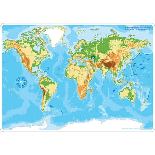 Smart Poly™ Learning Mat, 12" x 17", Double-Sided, World Physical Map