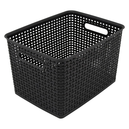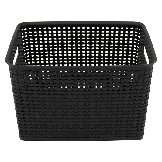 Plastic Weave Bin, Medium, Black, Pack of 3