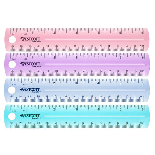 Plastic Ruler, 6 in, Assorted Colors, Pack of 36