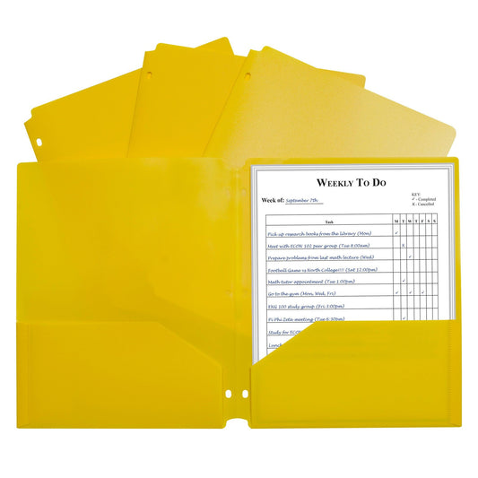 Two-Pocket Heavyweight Poly Portfolio Folder with Three-Hole Punch, Yellow, Pack of 25
