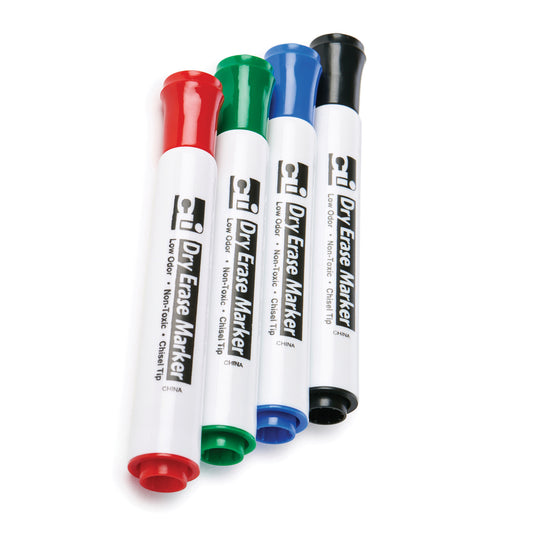 Barrel Style Dry Erase Markers, Assorted Colors, Chisel Tip, 4 Per Pack, 12 Packs