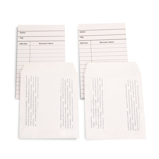 Library Cards & Self-Adhesive Pockets Combo, White, 30 Each/60 Pieces Per Pack, 3 Packs