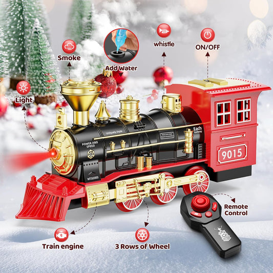 Train Set - Christmas Train with Remote Control Train Toys for Boys with Smokes, Lights and Sound,Toy Train Set for under Christmas Tree, Toddler Model Trains for 3 4 5 6 7 8+ Years Old Kids