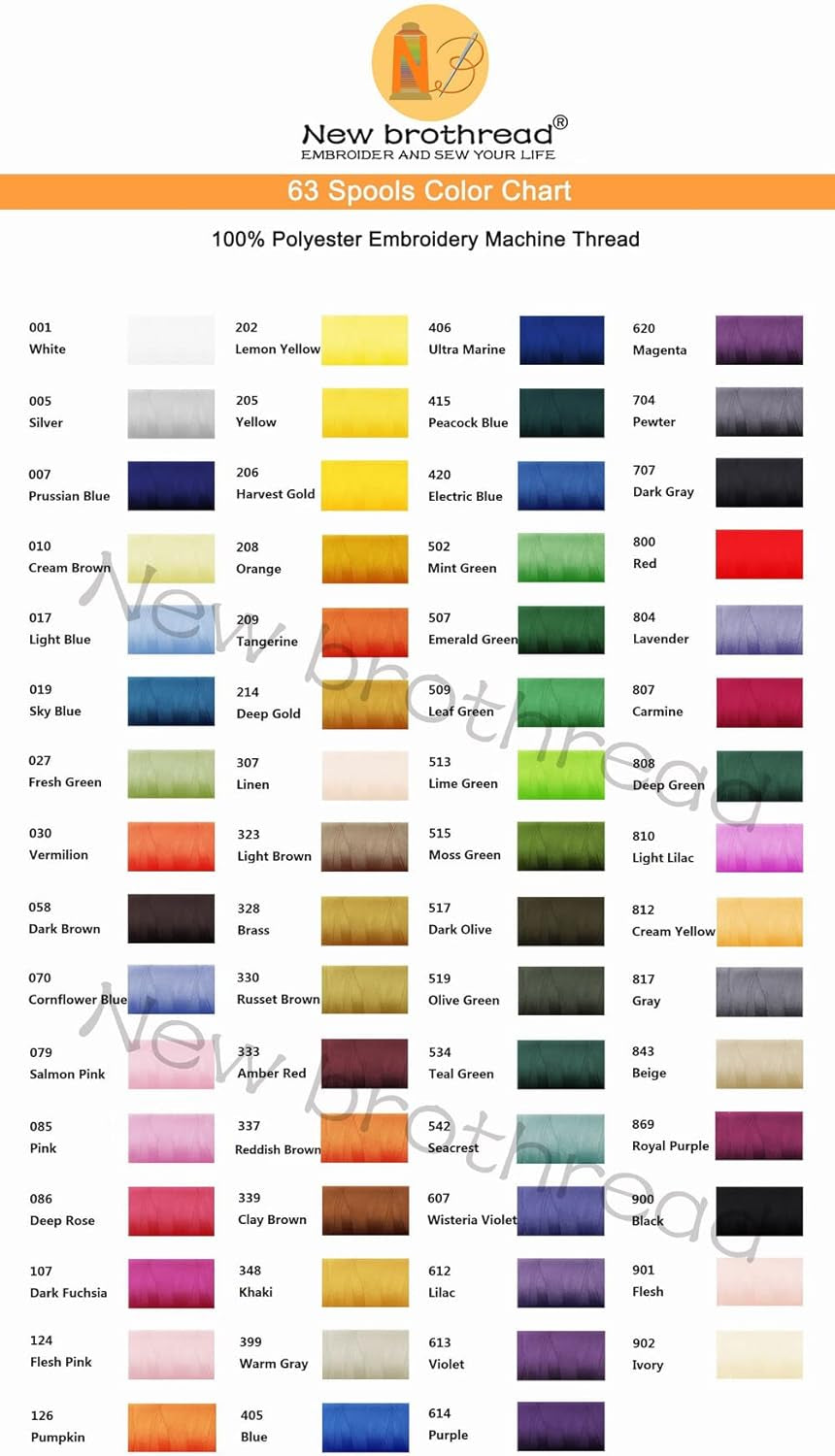 - ★ This set contains 63 Spools x 500m + Color Card in Cardboard Box - 63 spools professional assorted bright and beautiful colors polyester embroidery machine thread. Color Card with clear color No. and color name to match your design.