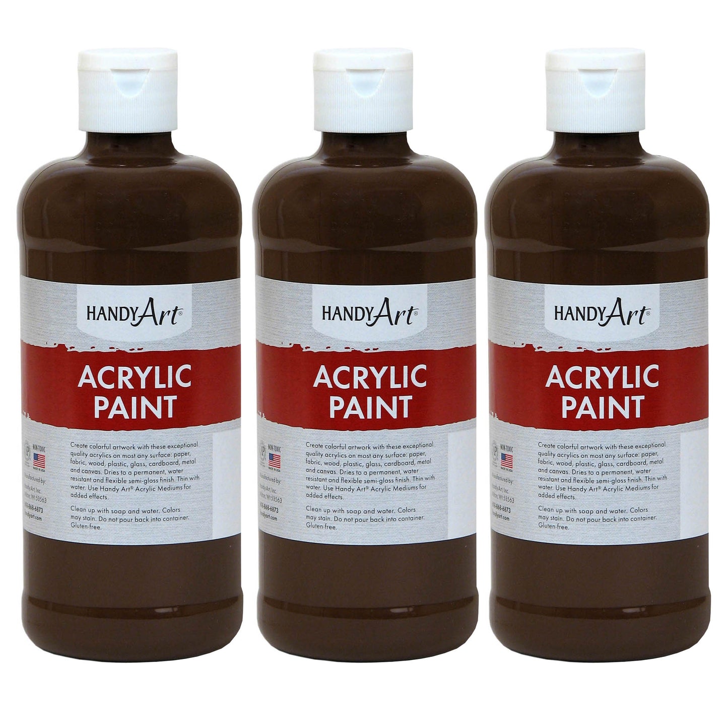 Acrylic Paint 16 oz, Burnt Umber, Pack of 3