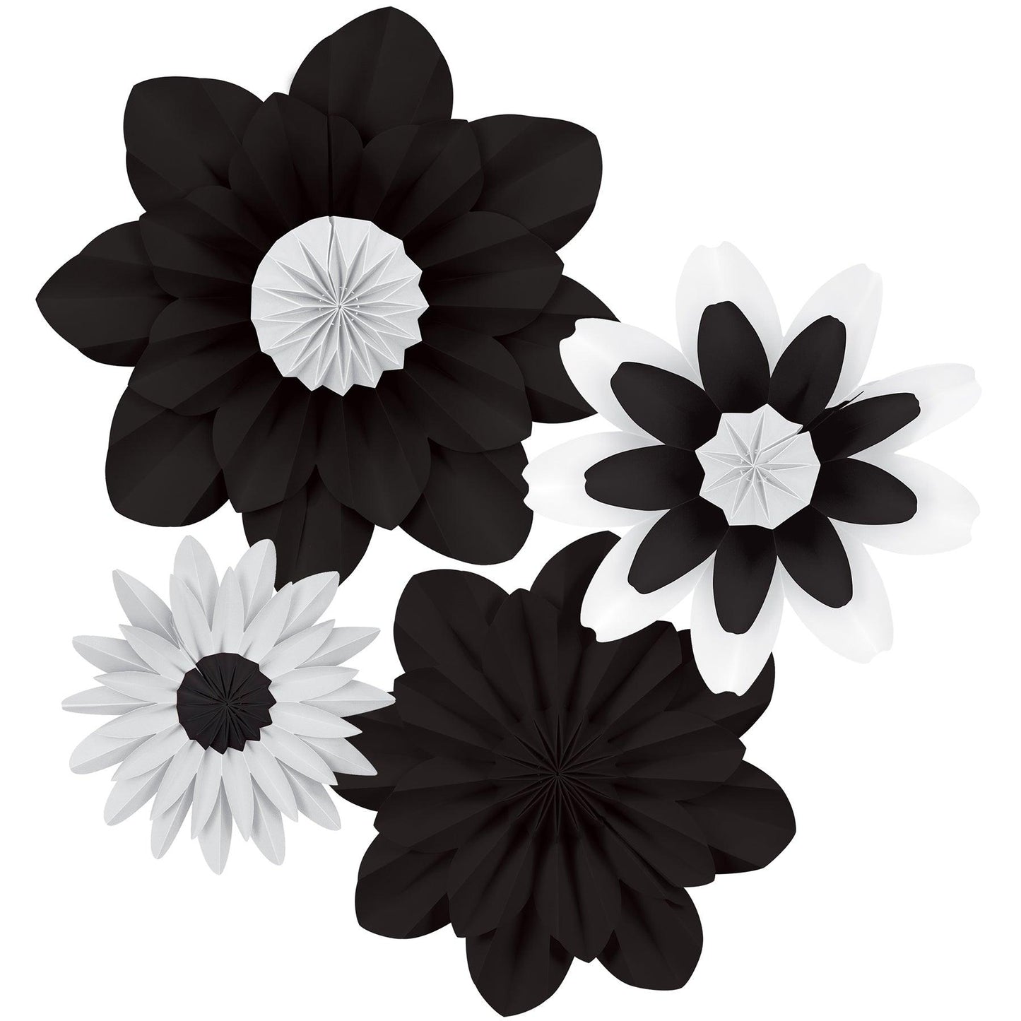 Create a colorful and unique look with these gorgeous paper flowers. Add depth and dimension to walls, backdrops, table decorations, and much more! No assembly required—opens easily and stays together with a hidden magnet. Folds back up for easy storage, so they can be used again and again. Each pack includes 4 flowers: one 16", two 11", and one 8" in diameter.