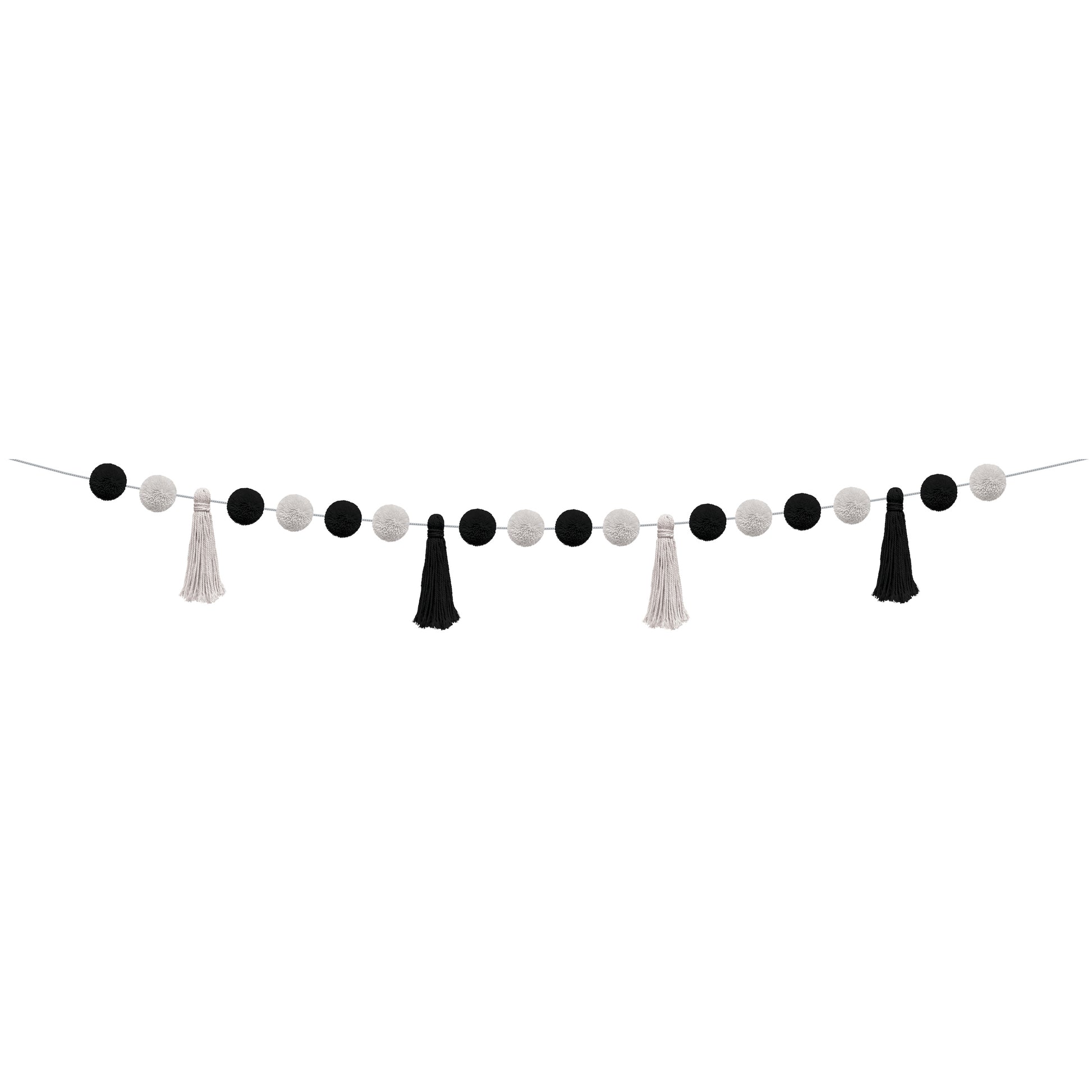 - Black and White Pom-Poms and Tassels Garland
