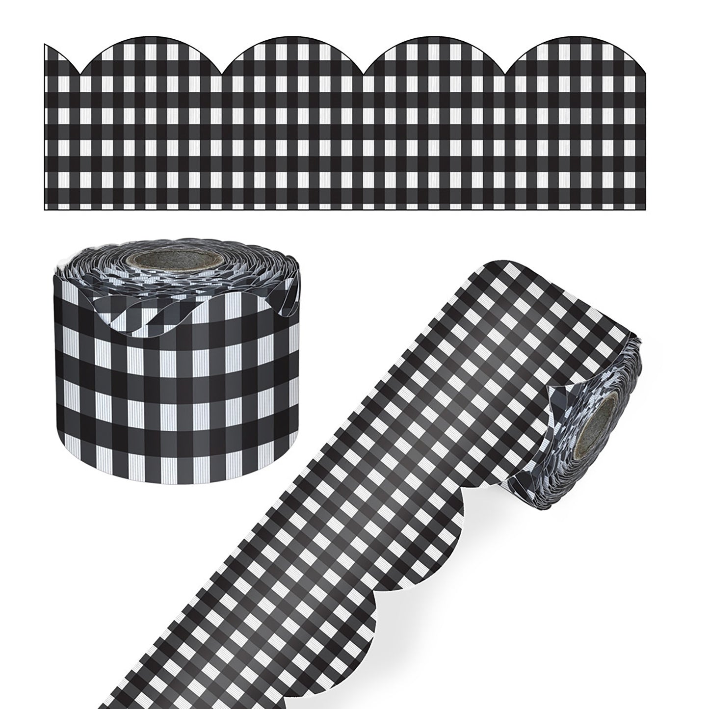 - Black Gingham Rolled Scalloped Borders, 65 Feet Per Roll, Pack of 3