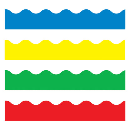 Irresistible designs at your fingertips! Spruce up your spaces and rev up the fun with a convenient Variety Pack of Terrific Trimmers®. Vibrant, contemporary designs create cheerful, inspiring classrooms, add pizzazz to parties and events, inspire clever hats 'n crowns, and dress up storage containers, cubbies, and shelves. Layer patterns on solids, sparkles, or metallics for extra WOW! Durable and reusable. Includes Red, Yellow, Green and Blue Terrific Trimmers®. Each pack includes 48 strips. Each strip measures 2.25" x 39" for a total of 156' per pack.