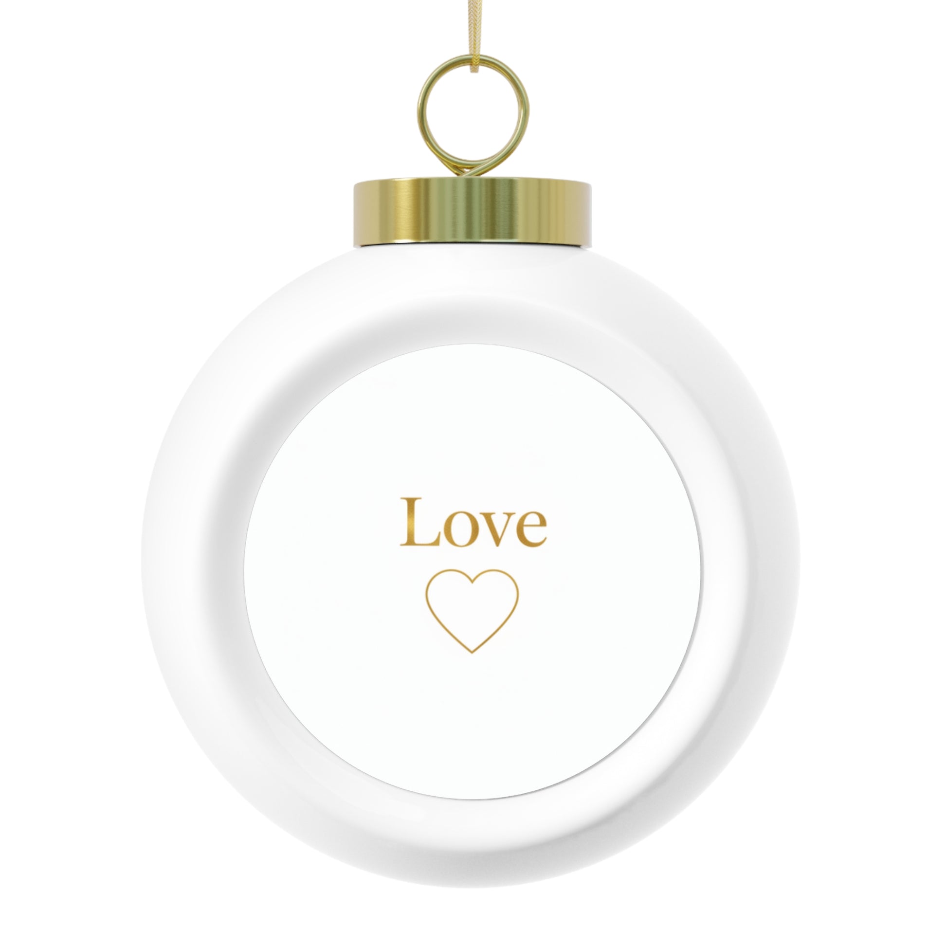 Glossy ceramic 3-inch ball ornament featuring the elegant word Love in a timeless style. The simple, vintage-inspired design adds a warm, romantic touch to holiday trees or seasonal décor. Includes a gold ribbon for easy hanging and makes a thoughtful small gift or stocking stuffer.