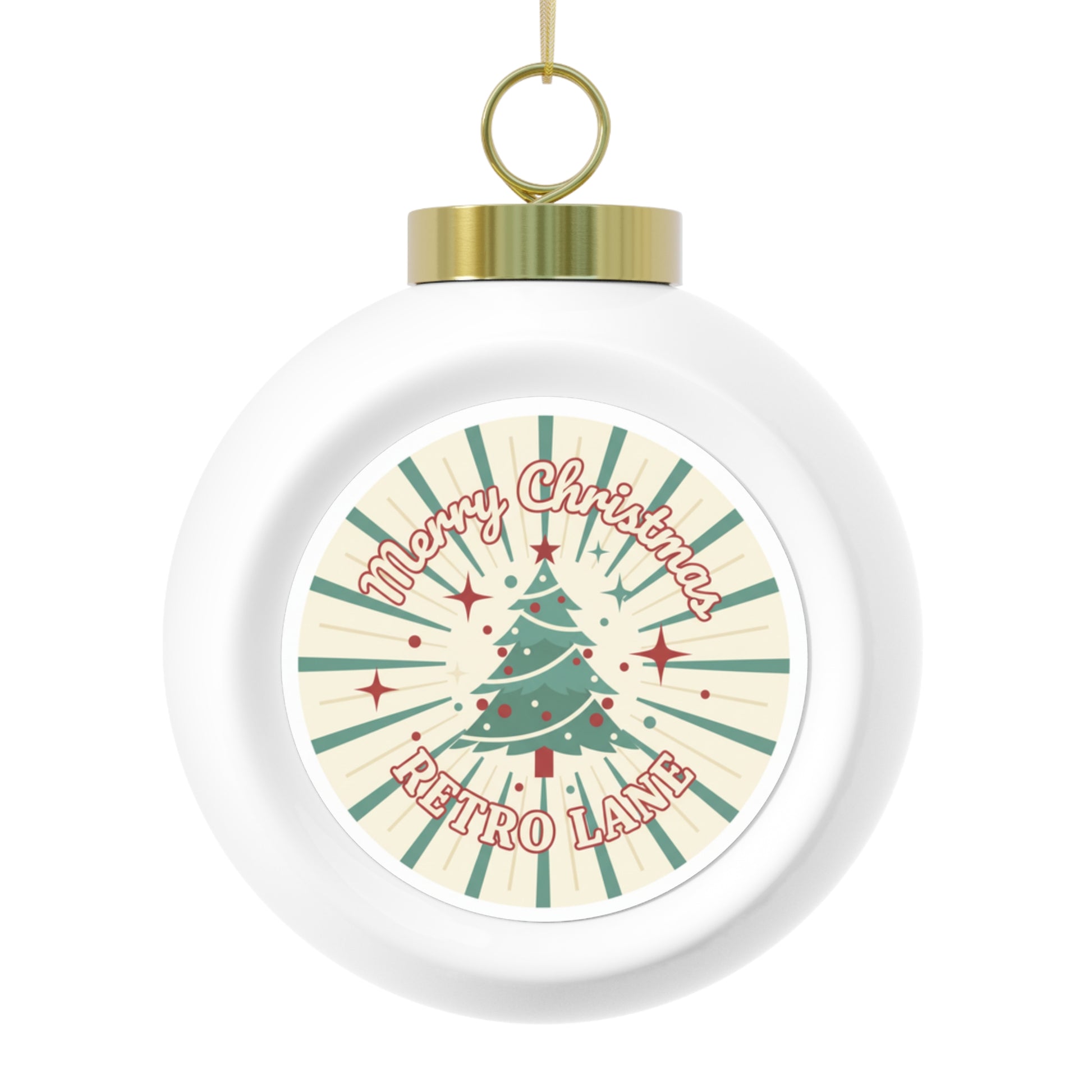 A glossy 3-inch ceramic ornament featuring a classic Merry Christmas script and vintage styling. Printed on an aluminum insert for crisp detail and finished with a gold hanging ribbon. Perfect for adding a timeless, personal touch to your tree or giving as a festive gift.
