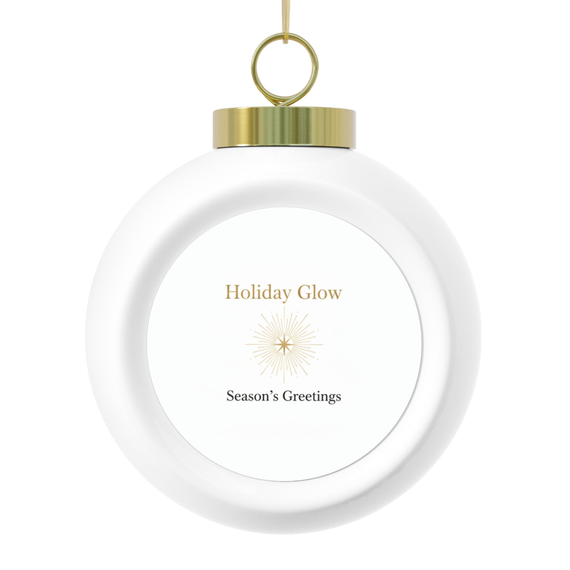Glossy 3" ceramic Christmas ball ornament featuring the festive "Holiday Glow" design in a classic, vintage-inspired style. Comes ready to hang with a gold ribbon and a subtle tree or bell motif on the back. A cheerful keepsake or gift that adds a warm glow to holiday décor.