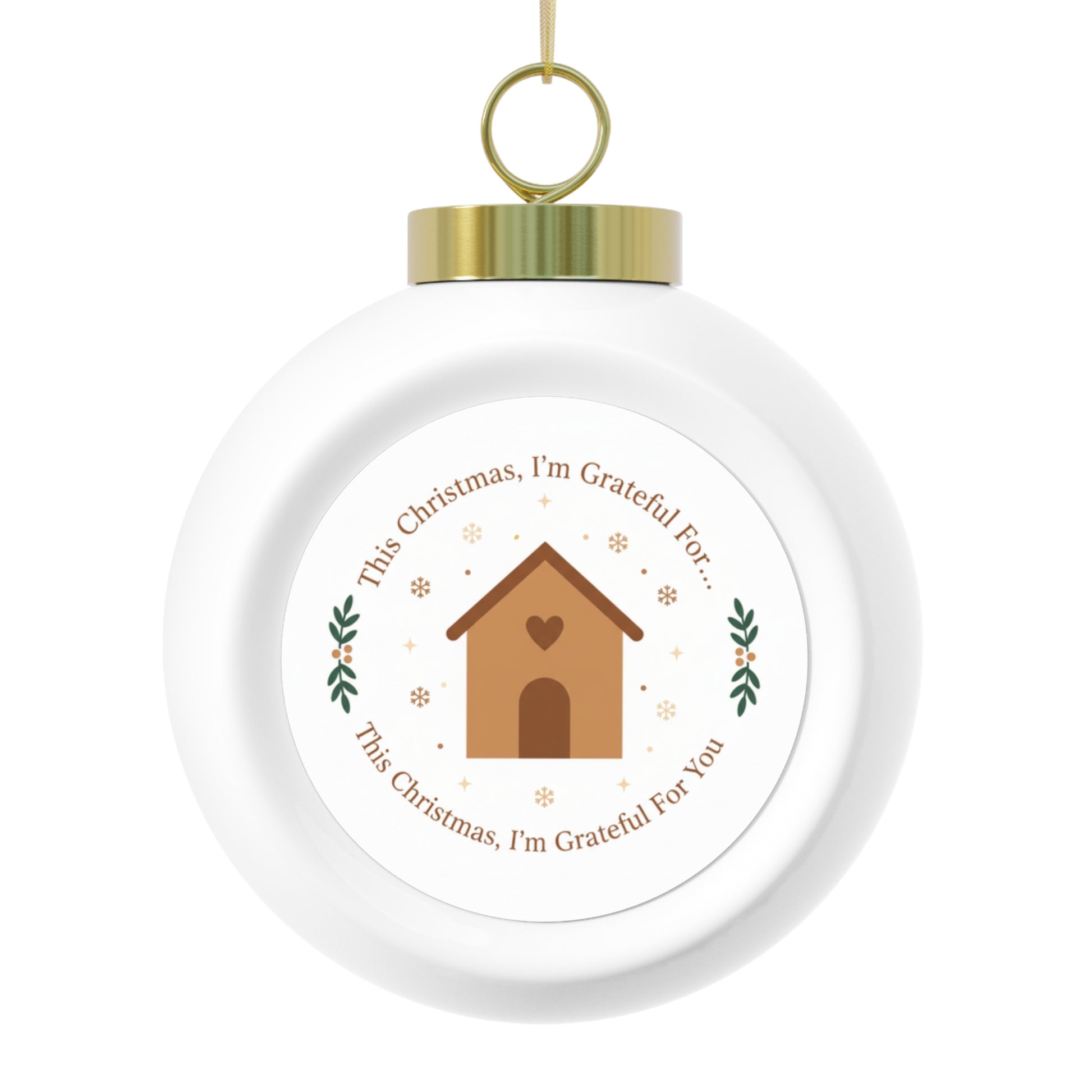 A 3-inch glossy ceramic Christmas ball ornament featuring the heartfelt message This Christmas, I'm Grateful For You. The design uses clean, readable typography for a warm, sentimental touch. Comes ready to hang with a gold ribbon, making it a thoughtful keepsake or gift for loved ones.