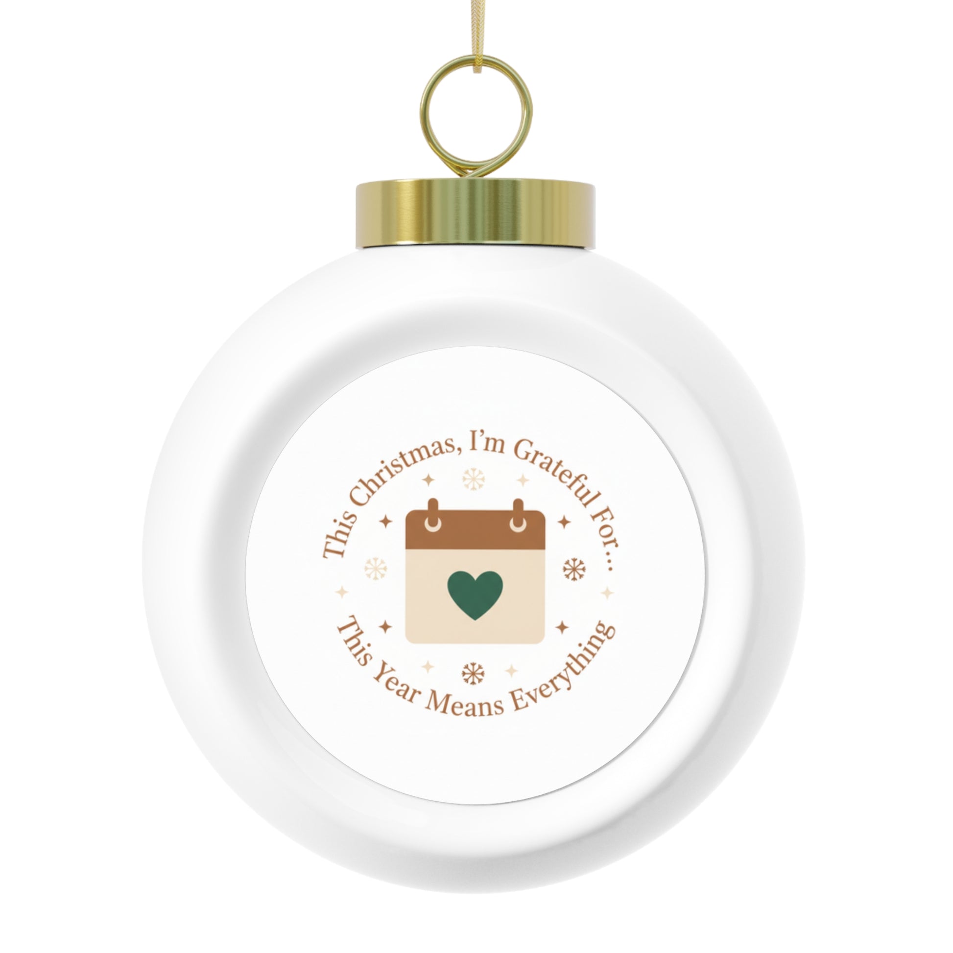 A heartfelt 3" ceramic ornament featuring the phrase This Year Means Everything in a vintage-inspired design. Glossy finish and a gold ribbon give it classic holiday appeal. Ideal for gifting or adding a meaningful touch to your tree, with a decorative back detail and durable insert for lasting display.