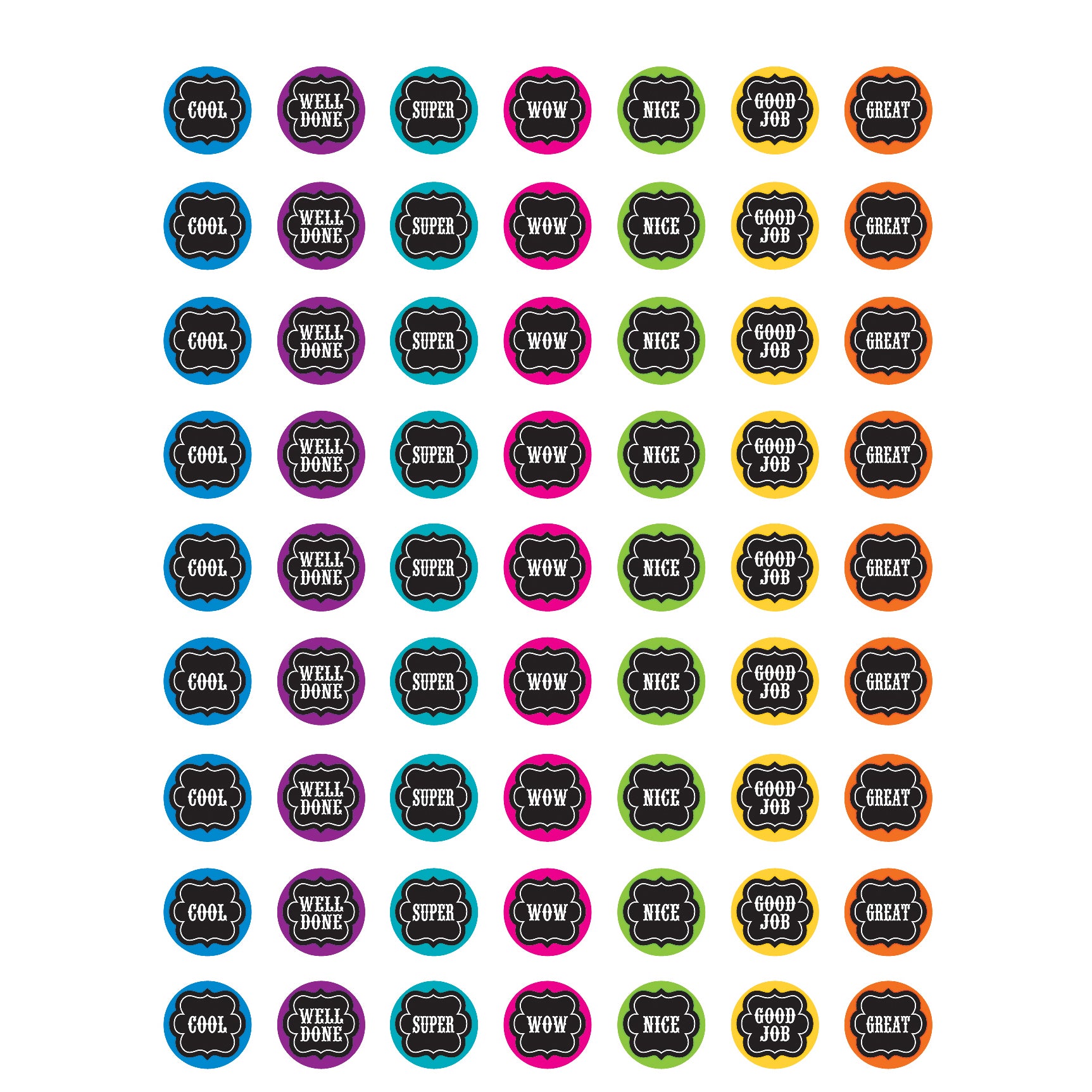 Decorating your classroom is a snap with this complete set! The Chalkboard Brights Classroom Set includes the following items: Chalkboard Brights Pennants Welcome Bulletin Board Display Set (TCR5614) Each pennant is 9-1/2"" x 13-1/2"". Also includes 41 multi-purpose cards and a teacher's guide with suggested activities. 48 pieces total. Chalkboard Brights Calendar Bulletin Board Display Set (TCR5615) Comes with easy-to-read number pieces, colorful monthly headers, and additional pieces for holidays and special occasions as well as yesterday, today, and tomorrow. Blank calendar measures 24"" x 18"". Includes 84 pieces: calendar chart, 12 monthly headers, 33 pre-numbered calendar days, 14 special days/events cards plus 6 blank cards, days of the week chart and chart labels, and Seasons/Weather chart and chart labels. Chalkboard Brights Mini Stickers (TCR5626) Stickers are acid-free and lignin-free. Measures approximately 1/2"" diameter. Includes 378 stickers. Chalkboard Brights Accents (TCR5622) Use this decorative artwork to dress up classroom walls and doors, label bins and desks, or accent bulletin boards. Includes 30 accents, 3 each of 10 designs. Pieces measure approximately 6"". Chalkboard Brights Incentive Charts (TCR5625) These charts have 7 columns to accommodate all 7 days of the week! Longer spaces for headings accommodate longer names for children and their tasks. The charts have the same overall dimensions, so they fit in the same space as other charts. Measures approx. 5-1/4"" x 6"". Includes 36 sheets. Chalkboard Brights Bold Block 4"" Letters Combo Pack (TCR5617) Create bulletin boards, classroom centers, signs, banners, and other displays. They punch out easily and are coated for durability. Includes 230 total pieces: 61 uppercase letters, 95 lowercase letters, 20 numbers 0 to 9, 40 punctuation marks, and 14 Spanish accent marks