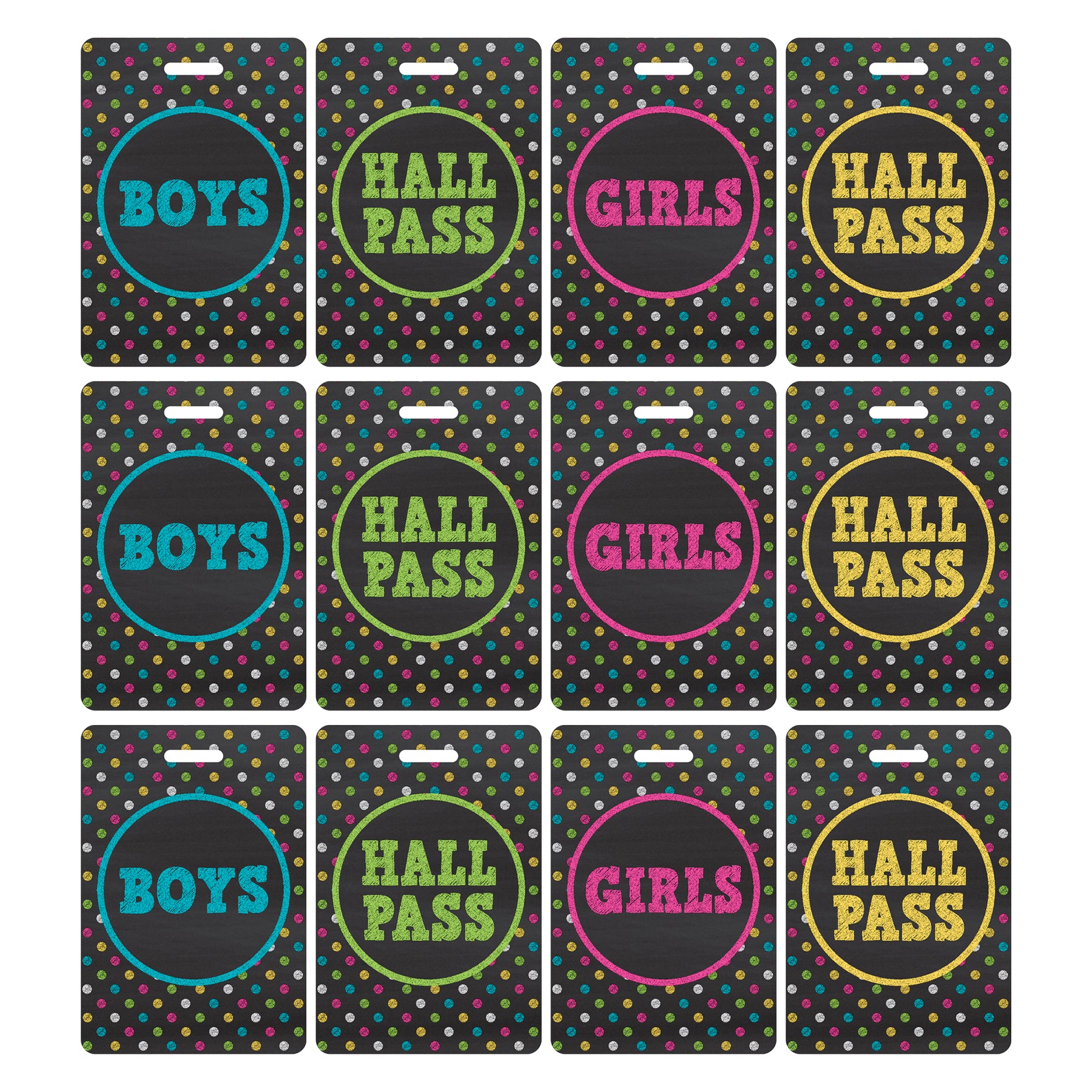 - Chalkboard Brights Hall Pass with Lanyard, 4 Per Pack, 3 Packs