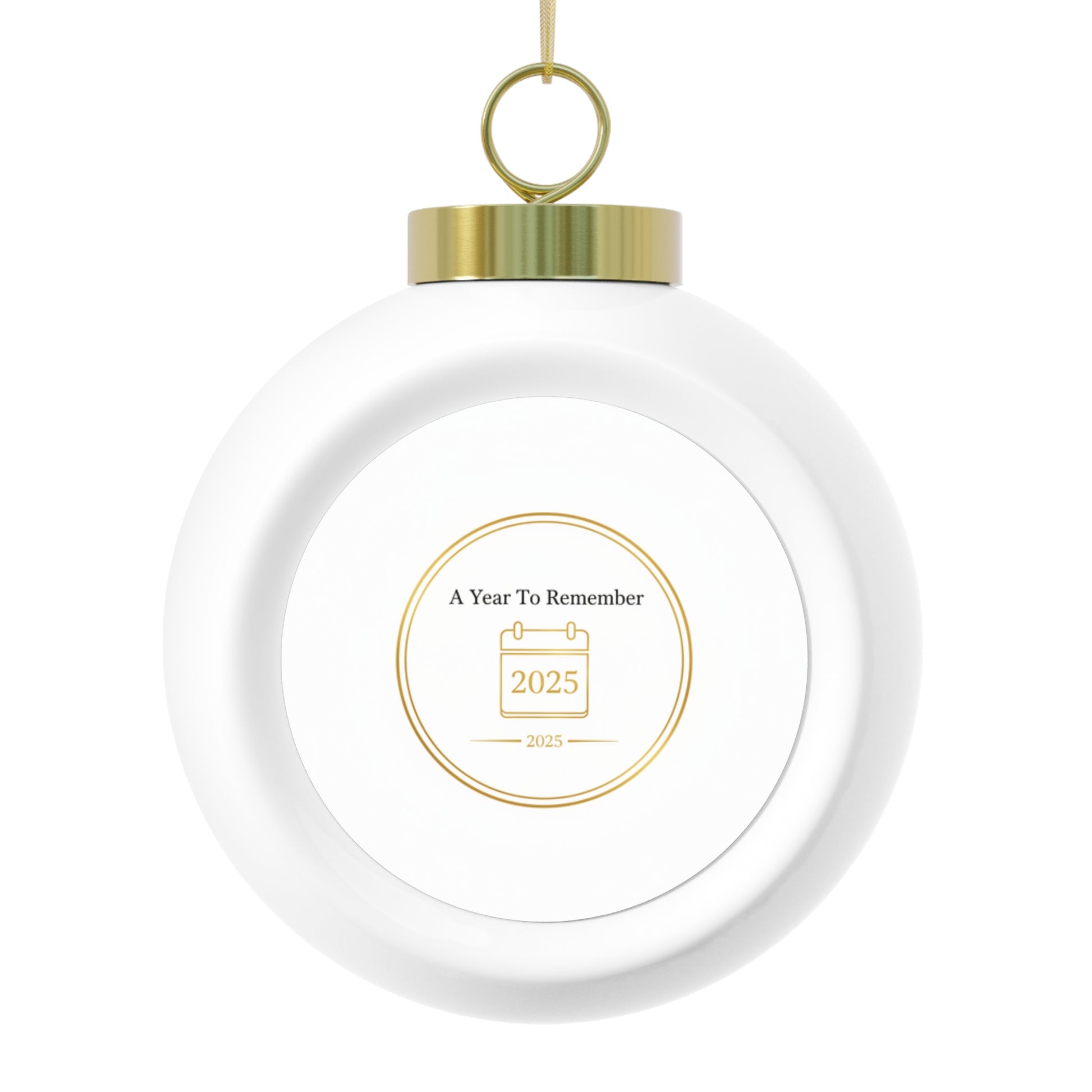 A glossy 3" ceramic ornament featuring the phrase A Year To Remember in a vintage style. Includes a gold ribbon for easy hanging and a decorative tree or bell on the back. Makes a thoughtful holiday keepsake or gift to mark a memorable year.