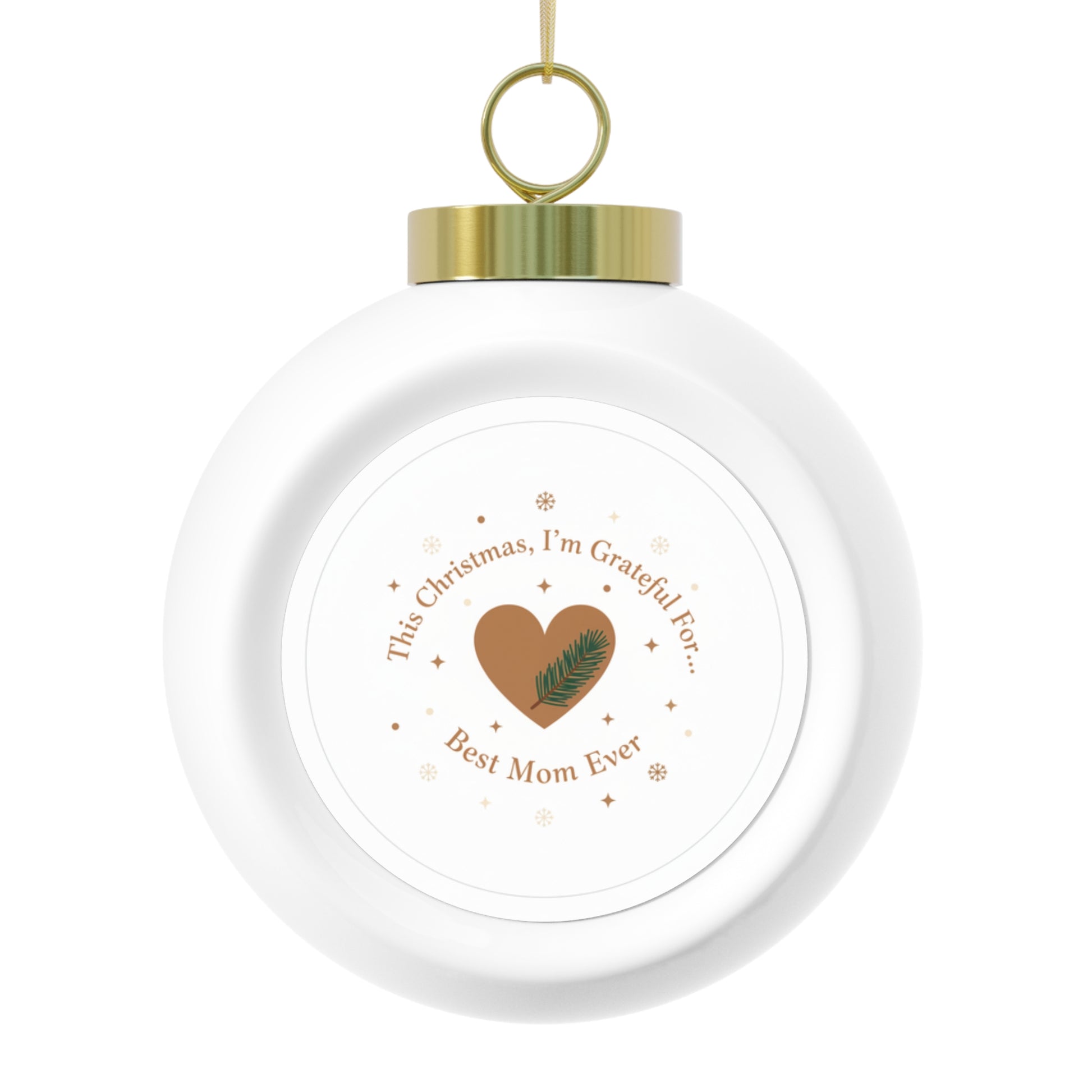 Celebrate Mom with this glossy 3-inch ceramic Christmas ball ornament featuring bold Best Mom Ever text. It includes a gold ribbon for easy hanging and a classic vintage look. A thoughtful keepsake gift perfect for the tree or year-round display.
