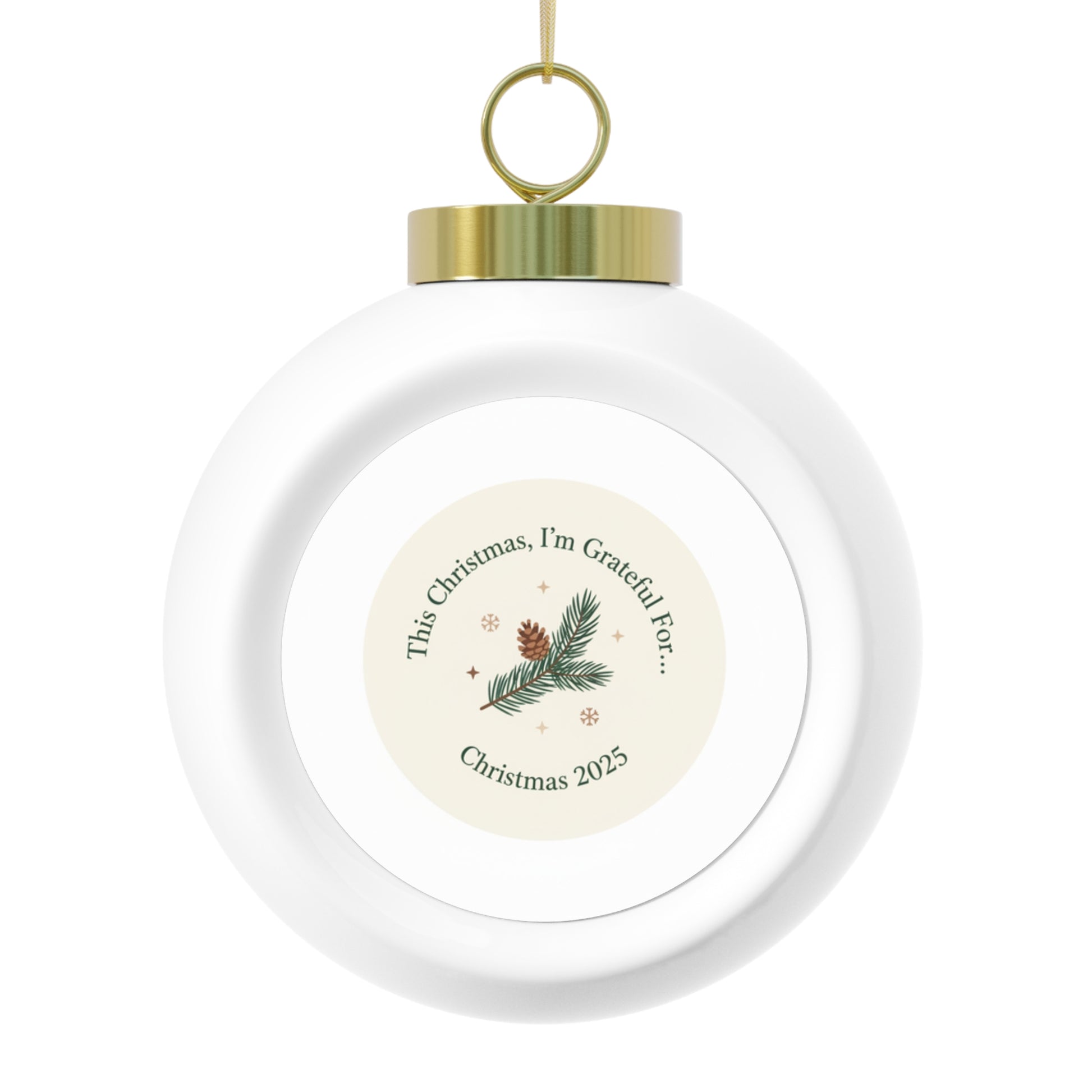 This glossy 3" ceramic Christmas ball ornament features the clean, festive 'Christmas 2025' design for a timeless holiday keepsake. It arrives with a gold ribbon for easy hanging and a vintage-style back accent. Durable and stylish, it makes a wonderful addition to any tree or a thoughtful gift.