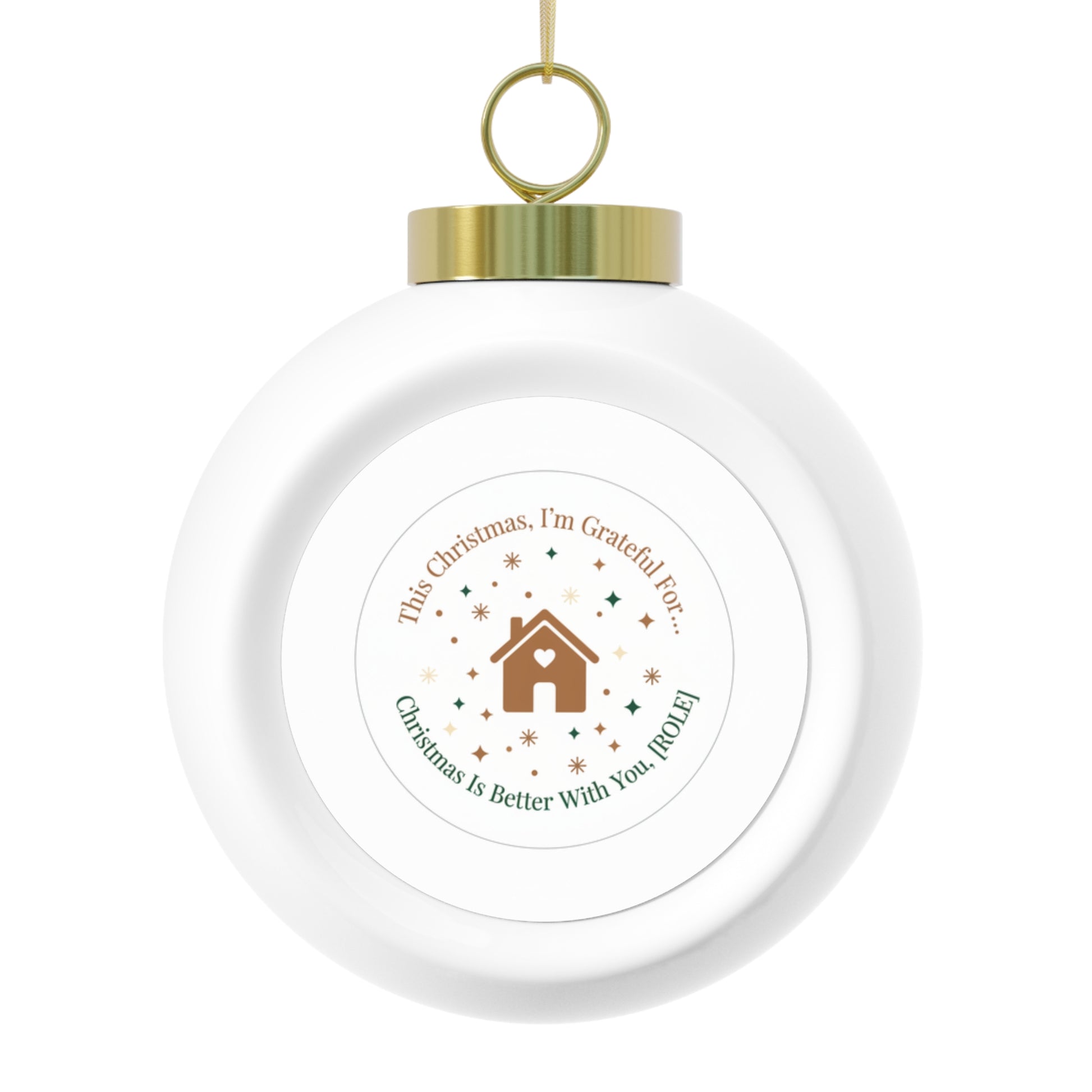 Glossy ceramic Christmas ball ornament featuring the phrase Christmas Is Better With You with a customizable role (e.g., Mom, Dad, Teacher). Comes with a gold ribbon for easy hanging and a vintage-style finish. A heartfelt, personalized ornament perfect for gifting or adding a special touch to your tree.