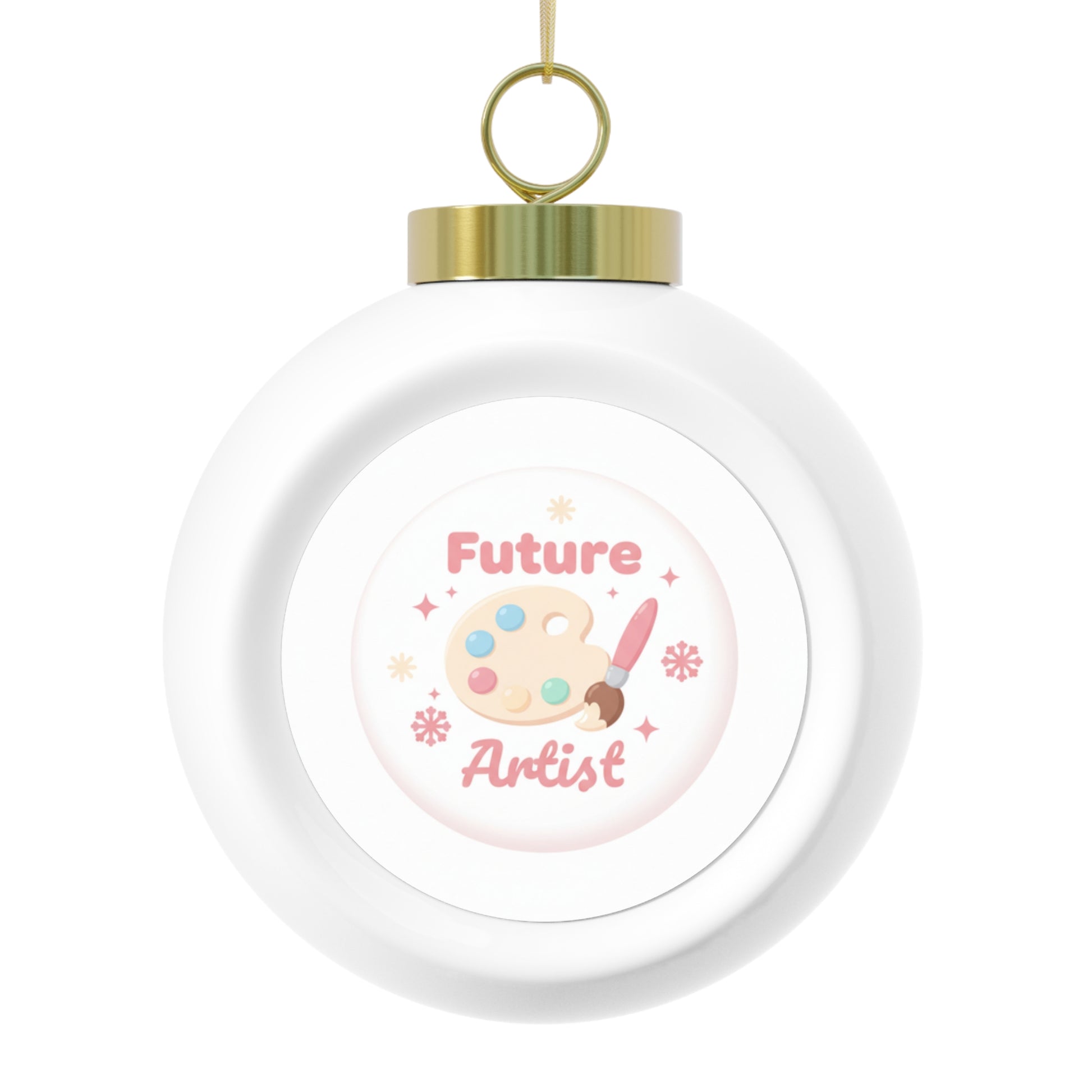 A glossy 3-inch ceramic Christmas ball ornament featuring the bold Future Artist design. Perfect for creative kids, art teachers, or anyone who loves celebrating creativity on their tree. Includes a gold ribbon for hanging and a vintage-style aluminum insert for a polished, gift-ready keepsake.