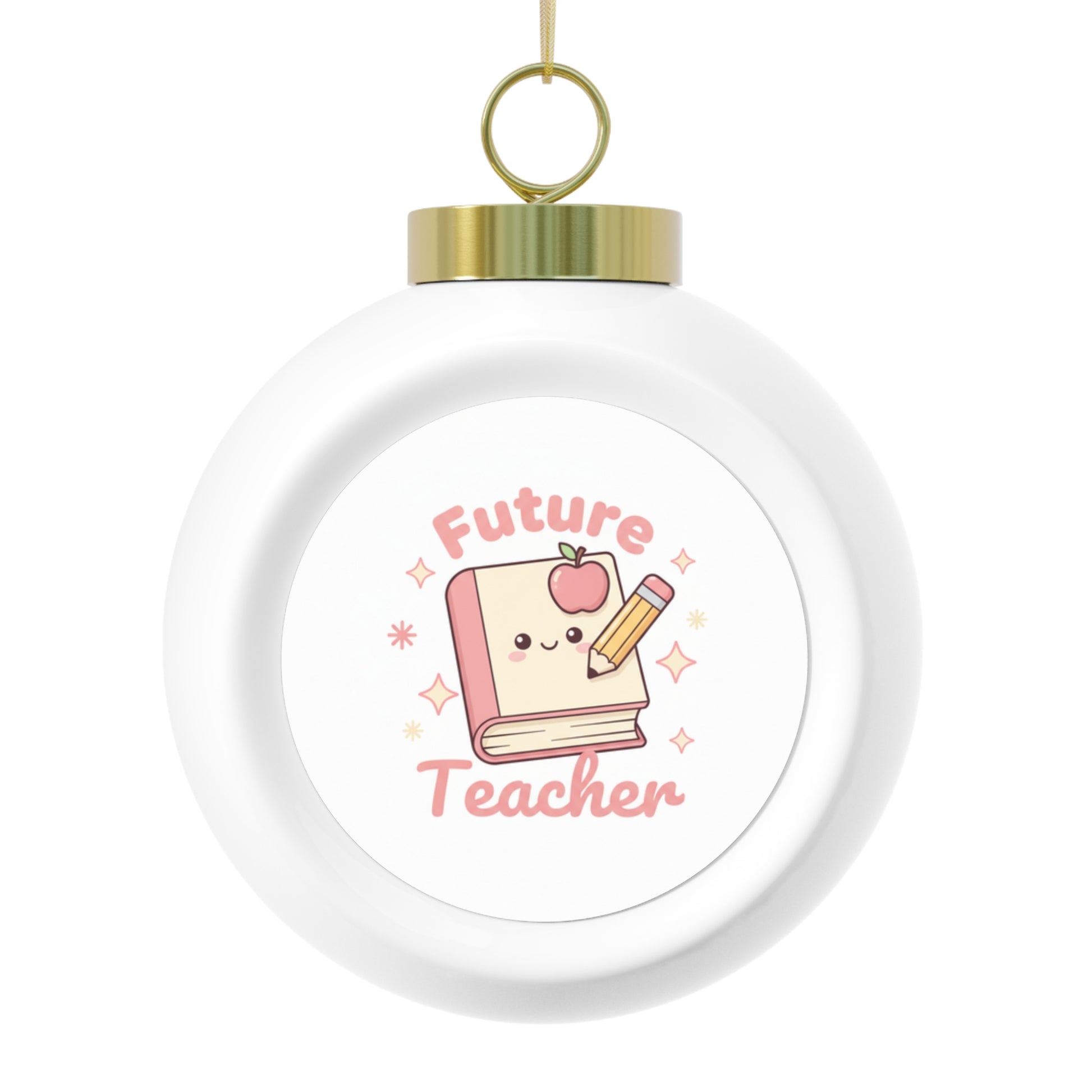 Celebrate an aspiring educator with this glossy 3" ceramic Christmas ball ornament featuring a bold Future Teacher design. It comes with a gold ribbon for easy hanging and a vintage-style back. A thoughtful gift for student teachers, education majors, or classroom-themed holiday decorating.