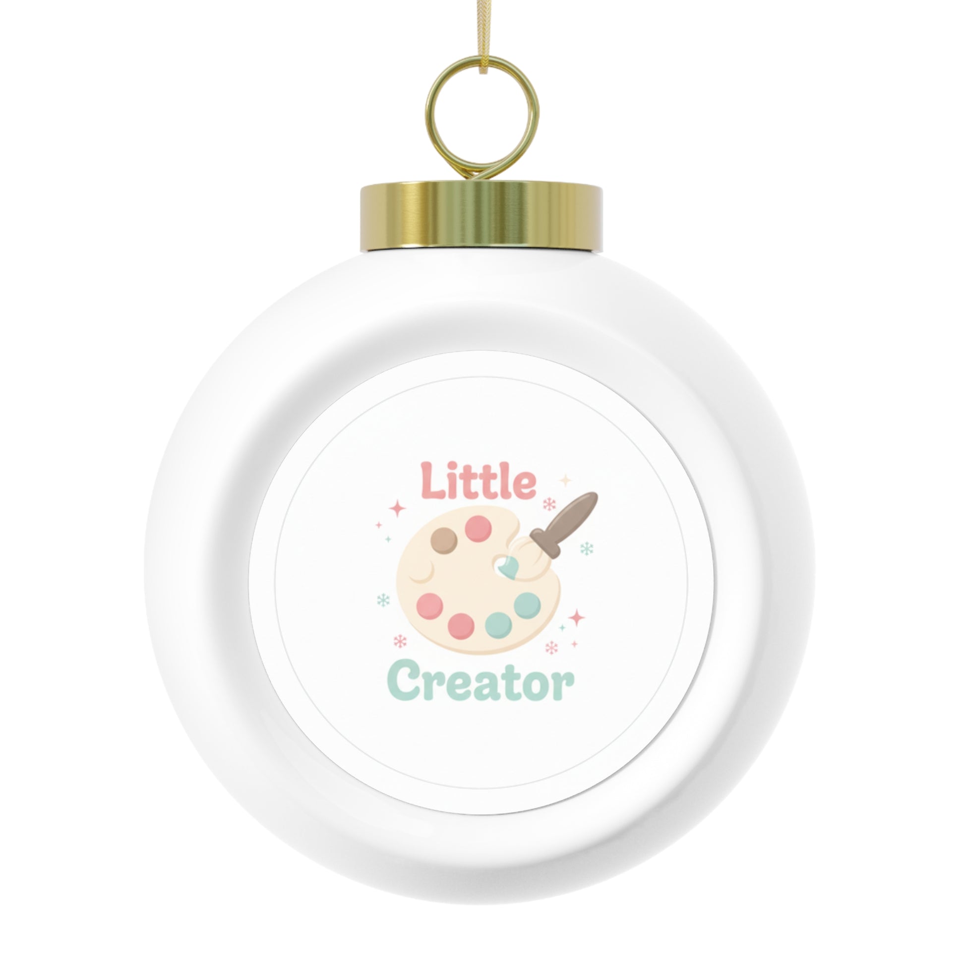 Glossy ceramic ornament featuring the playful "Little Creator" design, perfect for celebrating imaginative kids. Includes a gold ribbon for easy hanging and a durable printed insert for bright, lasting color. Great as a nursery tree decoration, baby shower gift, or stocking stuffer.