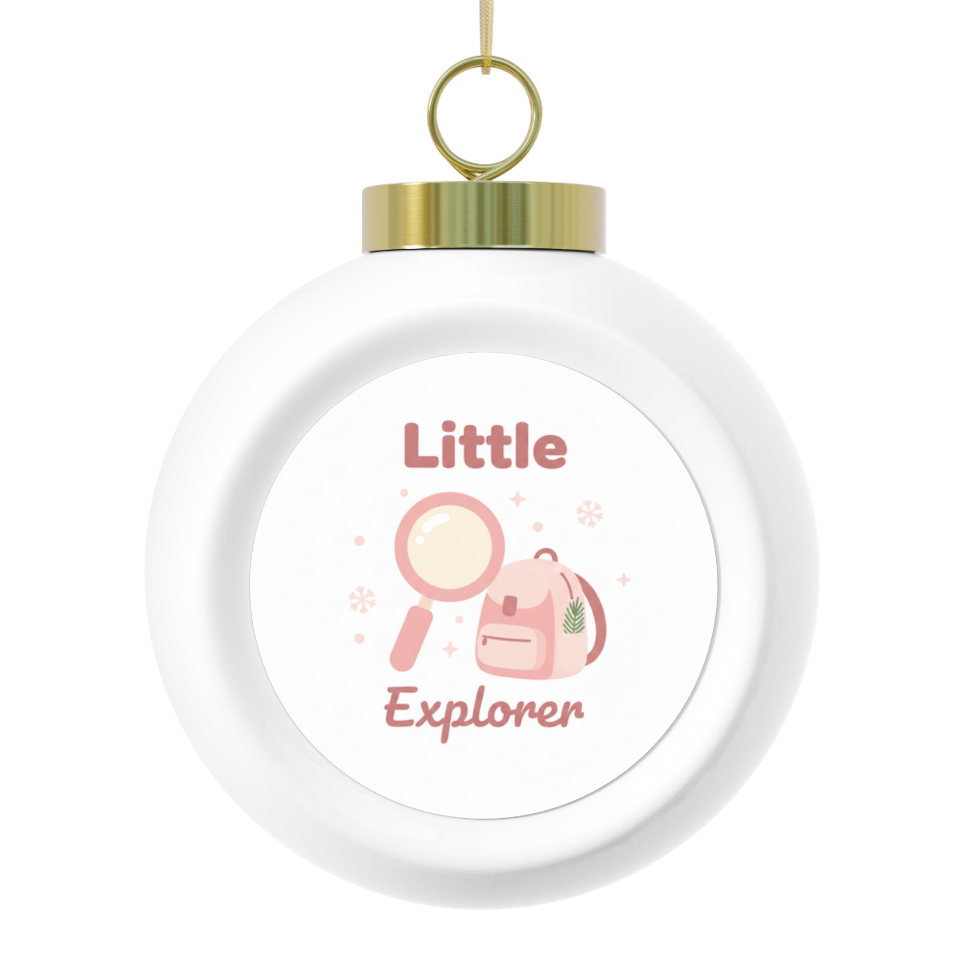 A glossy 3" ceramic Christmas ball ornament featuring a sweet Little Explorer design—perfect as a keepsake for adventurous kids. Vintage-inspired styling and a gold ribbon make it ready to hang on the tree. Durable printed insert preserves the colors and fine details for years of holiday memories.