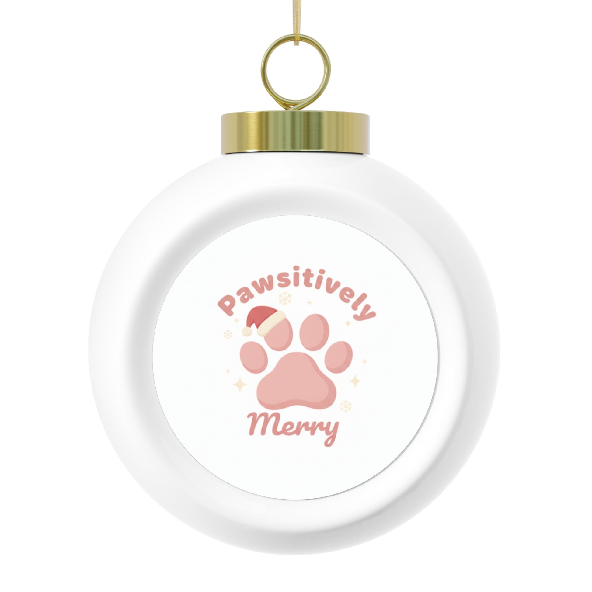 - Christmas Ball Ornament - Pawsitively Merry Paw Print