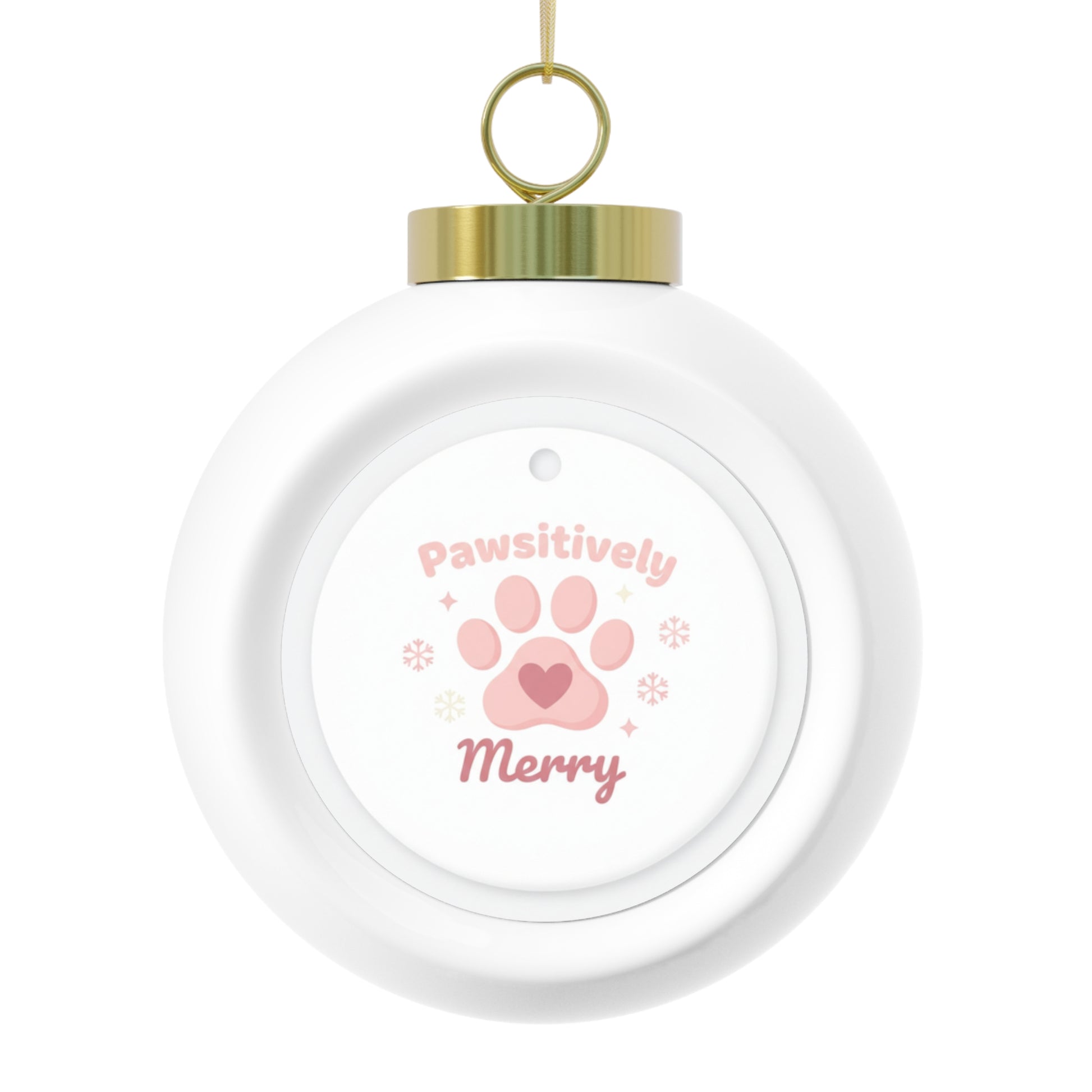 A glossy ceramic 3" ornament featuring the playful "Pawsitively Merry" text with paw accents, perfect for pet lovers. The design is printed on a durable insert and the ornament comes ready to hang with a gold ribbon. A charming, festive keepsake for decorating the tree or gifting to animal-loving friends and family.
