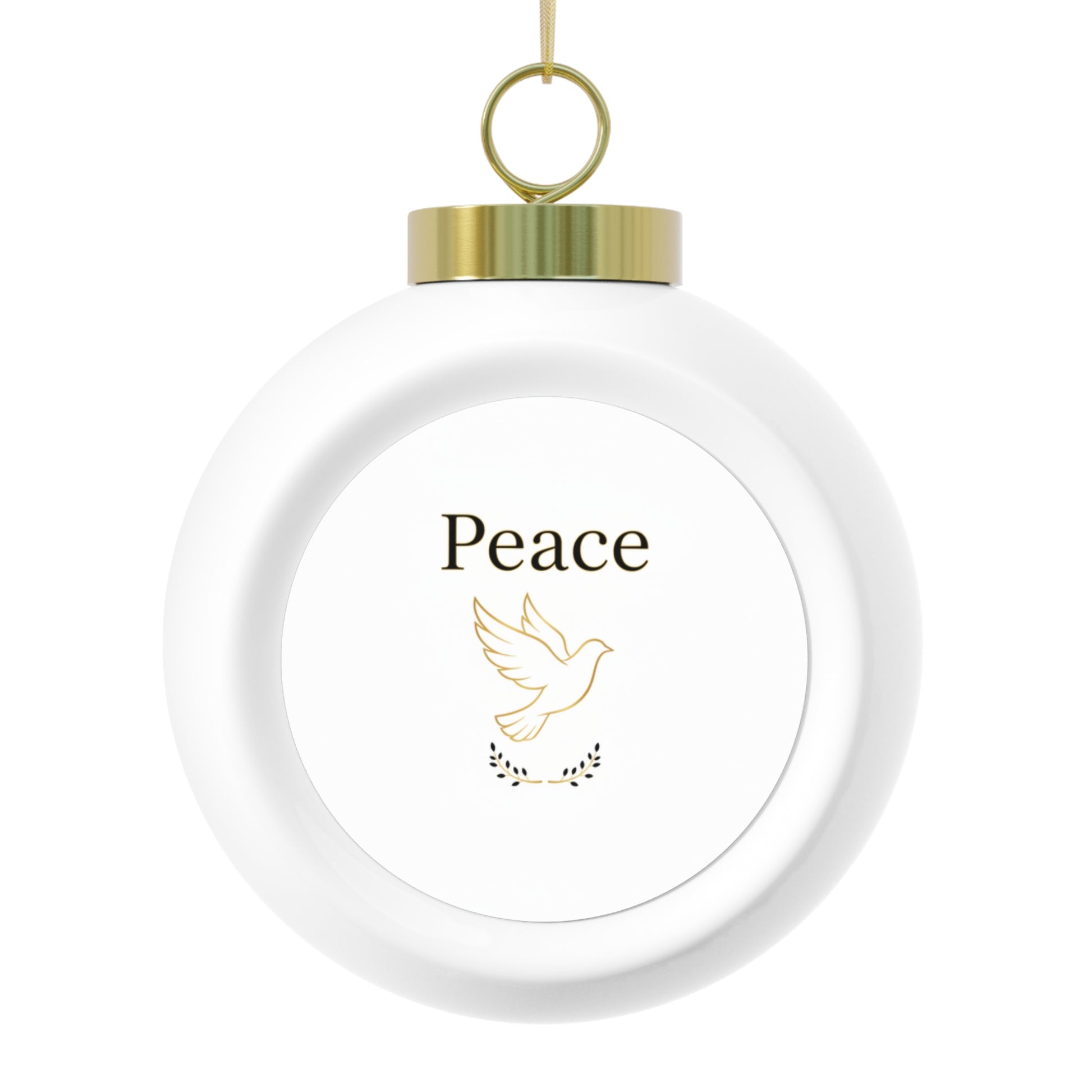 Peace lettering on a vintage-style glossy ceramic ball brings a calm, classic accent to your holiday tree. This 3-inch ornament includes a gold ribbon for hanging and a decorative back detail for an elegant finish. A thoughtful keepsake or gift that complements wreaths, stockings, and holiday displays.