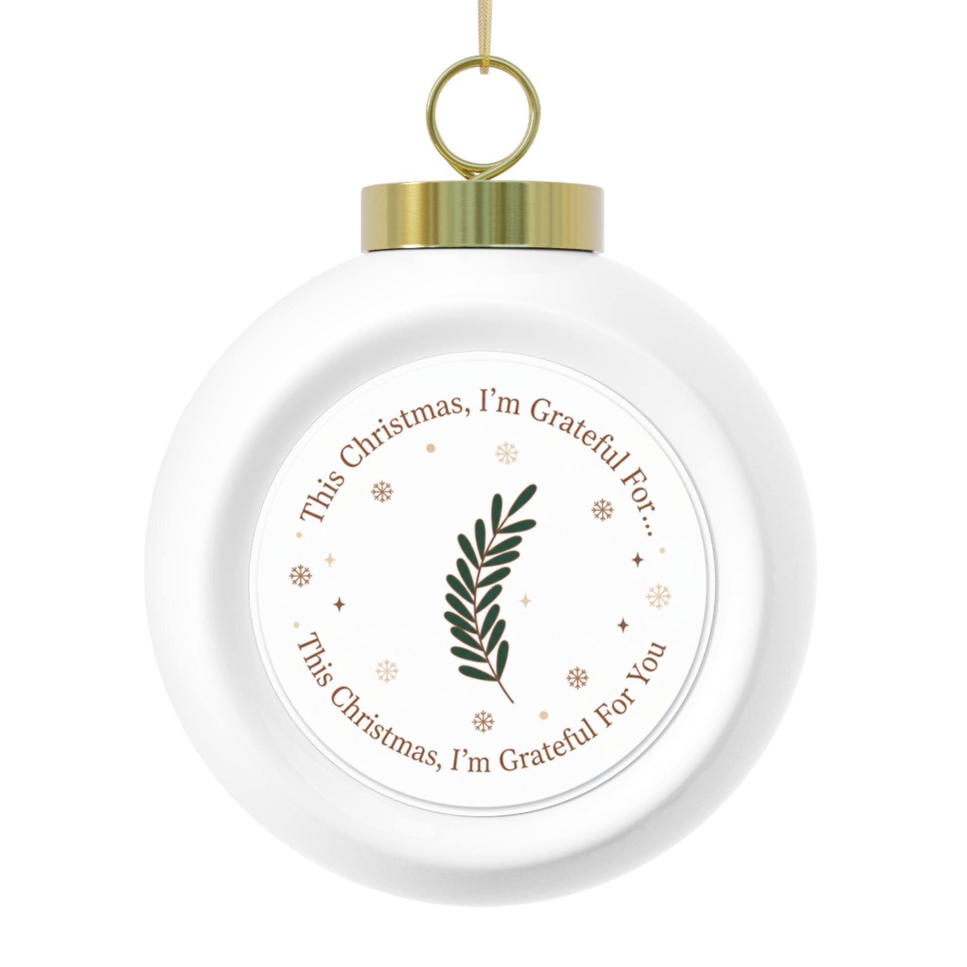 A glossy 3-inch ceramic Christmas ball ornament featuring the heartfelt phrase This Christmas, I'm Grateful For You in a warm, elegant layout. Comes with a gold ribbon for easy hanging and a vintage-style back accent. A thoughtful keepsake that's perfect for gifting or adding a personal touch to your holiday tree.
