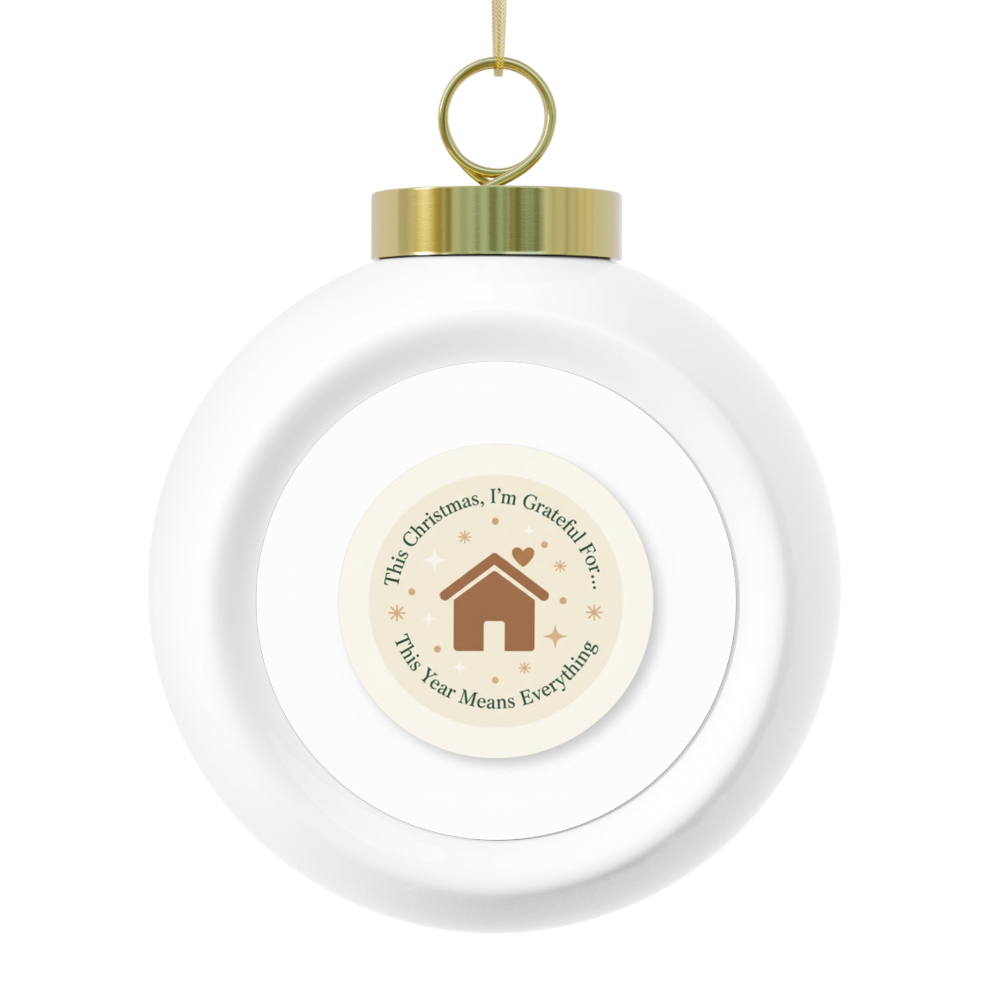 A glossy 3" ceramic Christmas ball ornament featuring the uplifting phrase This Year Means Everything in a vintage-inspired design. Printed on a durable aluminum insert and finished with a gold ribbon for easy hanging. A tasteful keepsake perfect for commemorating milestones, holidays, and special moments.