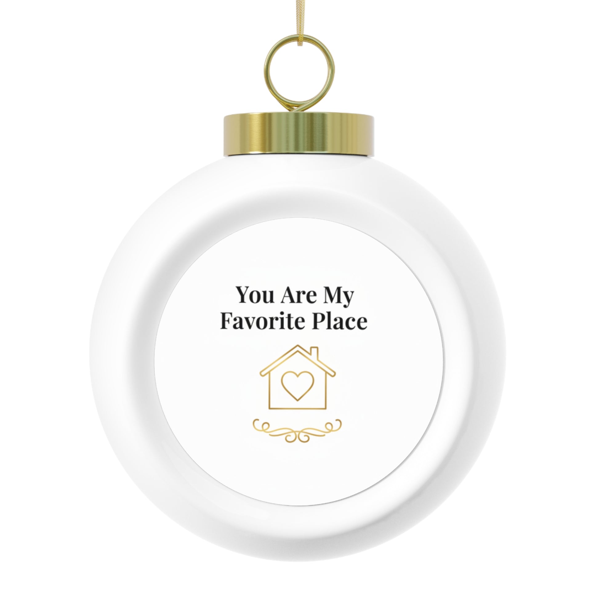 Glossy ceramic 3-inch Christmas ball ornament featuring the heartfelt phrase You Are My Favorite Place in elegant, timeless lettering. Includes a gold ribbon for hanging and a vintage-style back detail for extra charm. A perfect romantic keepsake for tree décor or thoughtful holiday gifts.