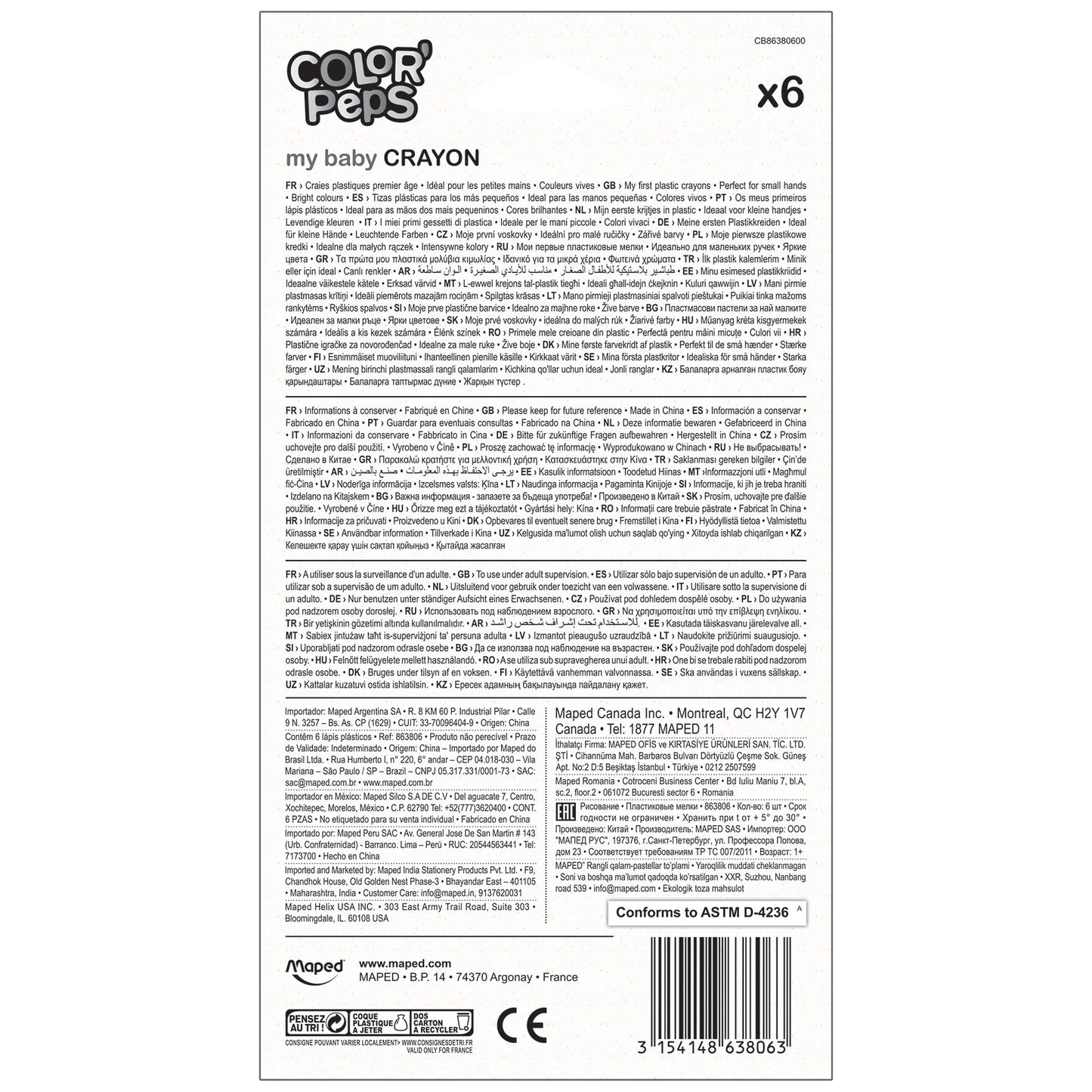 - Color'Peps My First PlastiClean Plastic Crayons, 6 Per Pack, 3 Packs