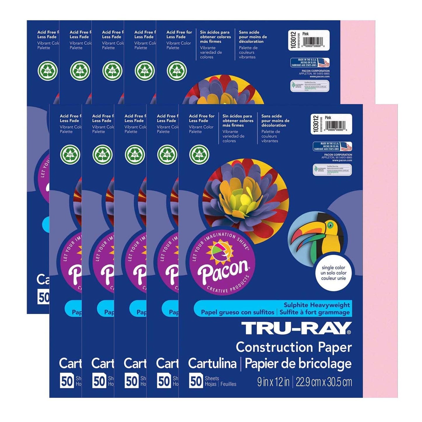 - Construction Paper, Pink, 9" x 12", 50 Sheets Per Pack, 10 Packs