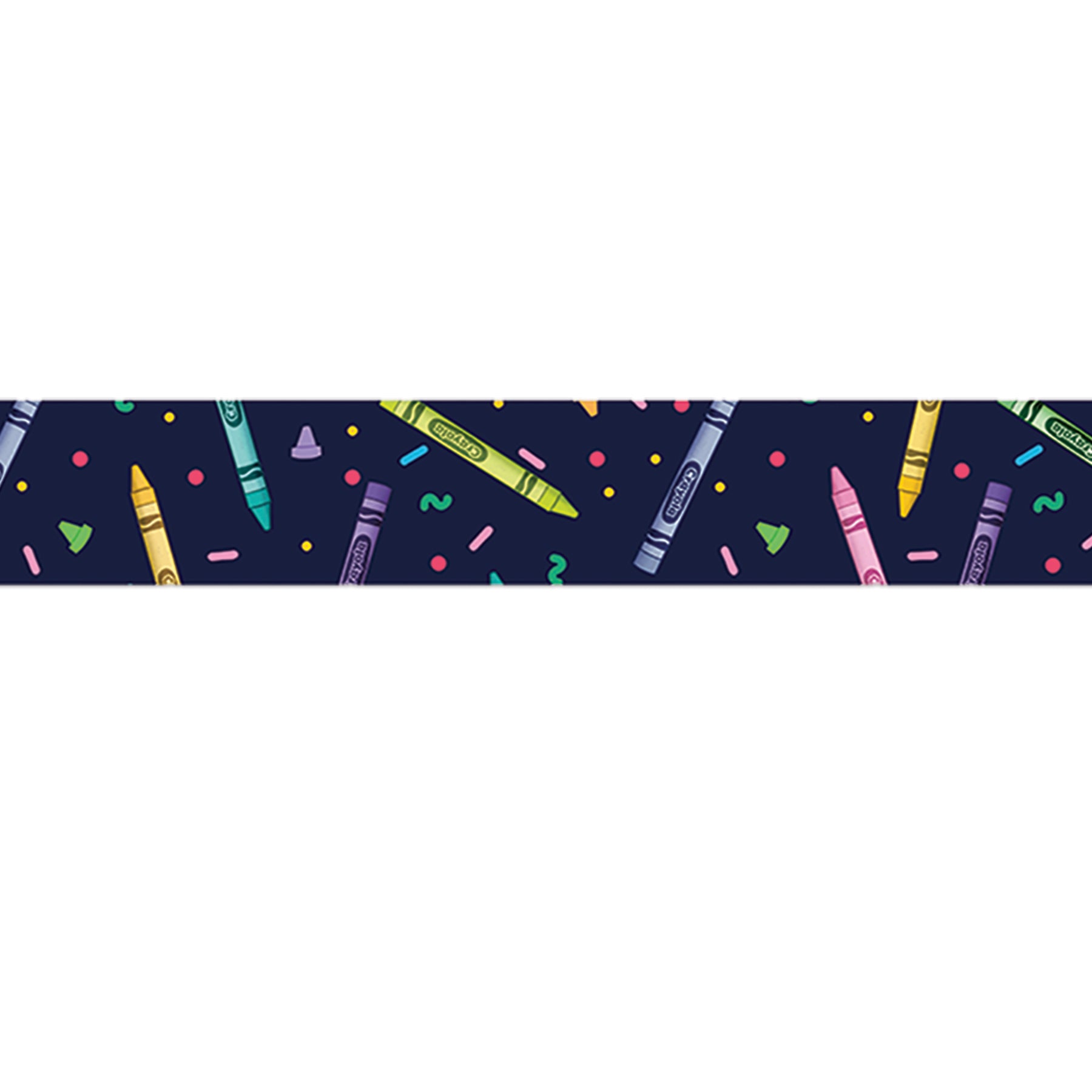 Use Eureka School Deco Trim® to add a finishing border to your displays, windows, doorways or chalkboards. Vibrant colors plus a variety of styles and themes can add creativity to displays, windows, chalkboards and more. Deco Trim® is printed on heavy weight cardstock and is reusable. Help amplify your students' learning environment with the easily recognizable look of Crayola®. Each pack includes 12 strips (each measuring 2-1/4" x 37") for a total of 37 feet. Sold as 6 packs for a total of 72 strips (324 feet).