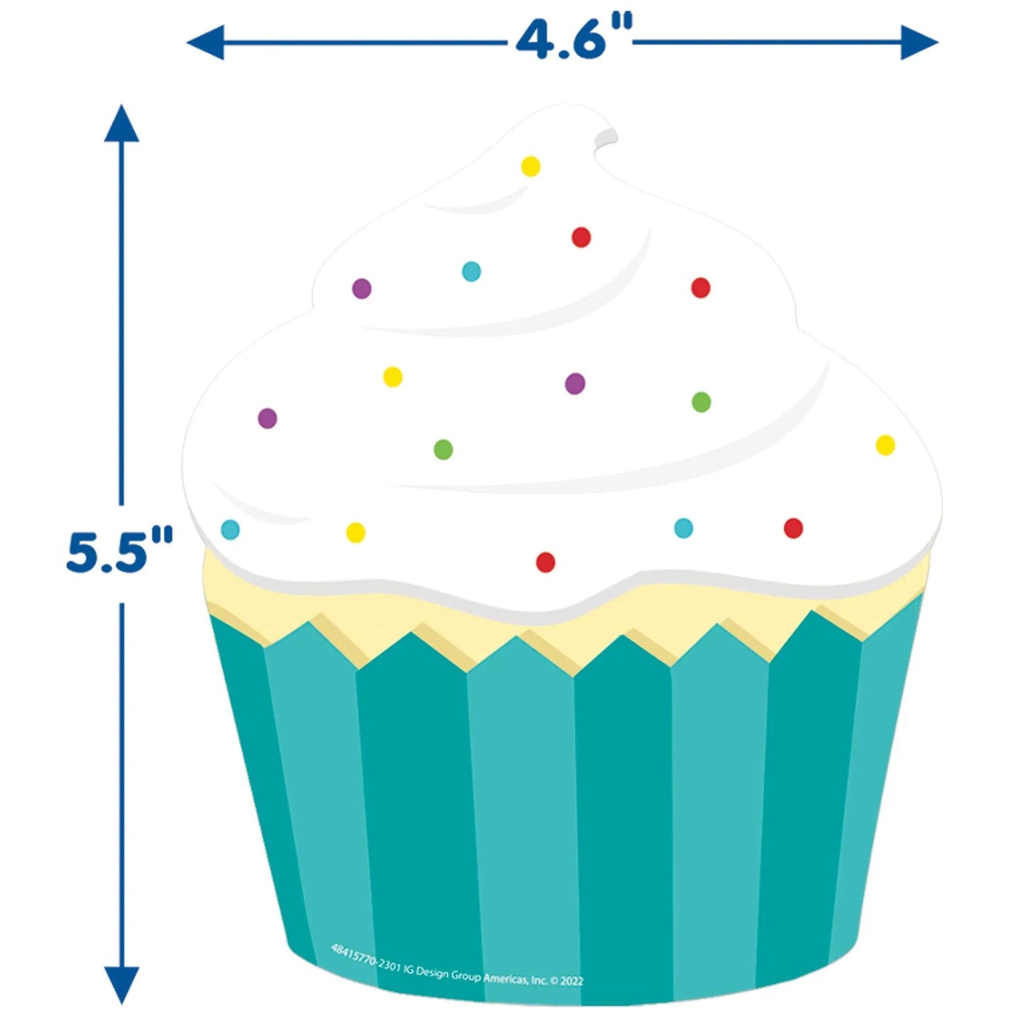 Add creativity and fun to bulletin boards, hallways, walls, projects and more with decorative Eureka Paper Cut-Outs. Individual cut-out measures approximately 5-1/2" x 5-1/2". Each pack includes 36 pieces in 1 design (cupcake). Sold as 3 packs for a total of 108 cut-outs.