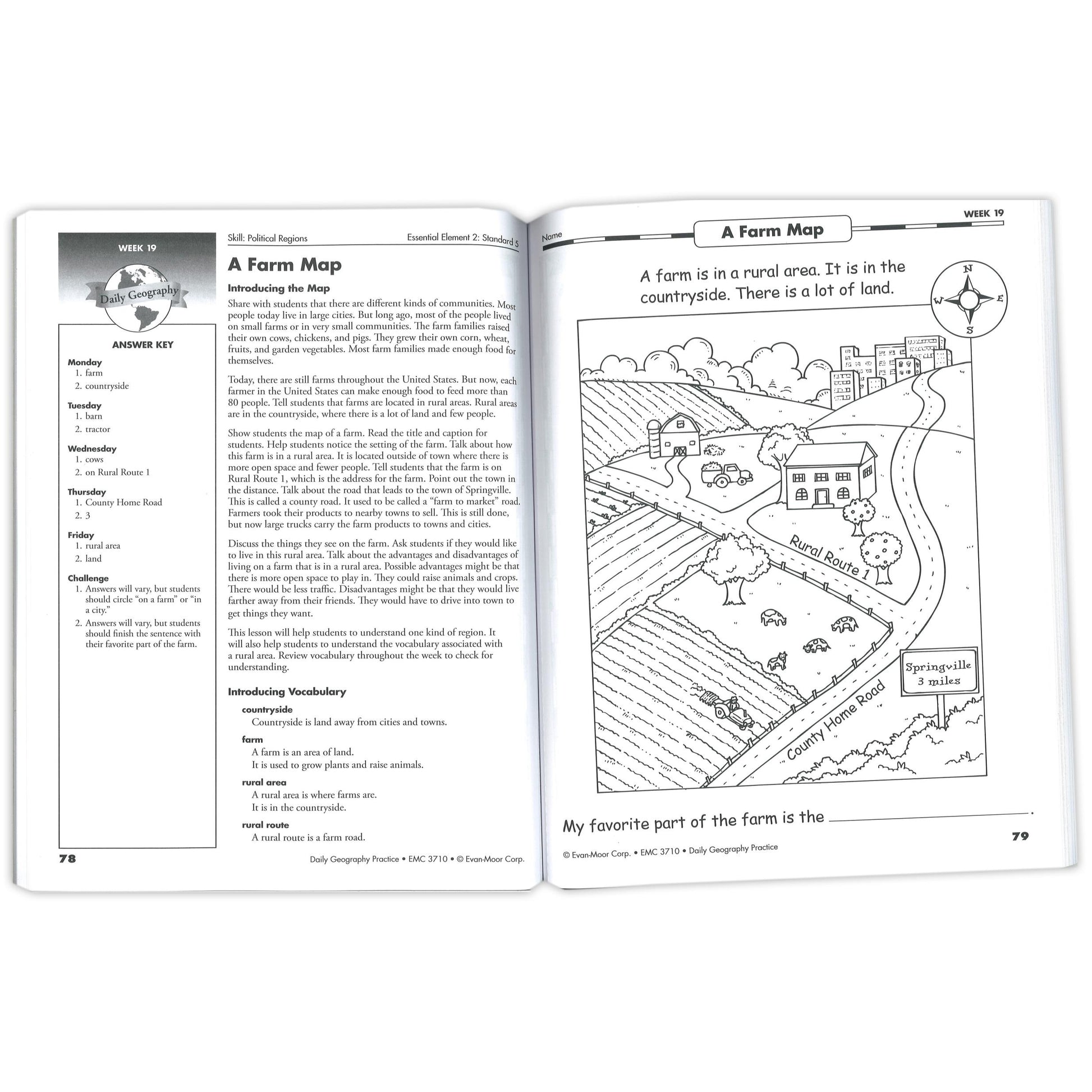 i : In Daily Geography Practice, Grade 1, 36 map lessons introduce basic geography skills and over 60 geography terms