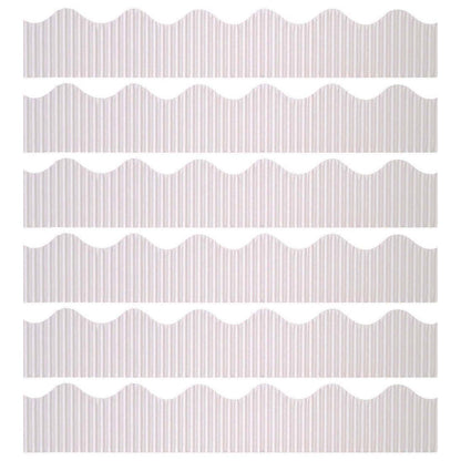 Bordette® is the original, pre-scalloped, fade-resistant decorative border. The sturdy corrugate provides a unique 3-dimensional appearance on any flat surface. It bends, molds, turns and twists to create unique layered designs. Packaged in a perforated roll, Bordette is easy to separate. It's easy to mix and match colors to create the perfect display. One 50' roll of Bordette will completely edge two 8' x 4' bulletin boards. Recyclable. Each roll includes 2.25" x 50'. Sold as a pack of 6 rolls.