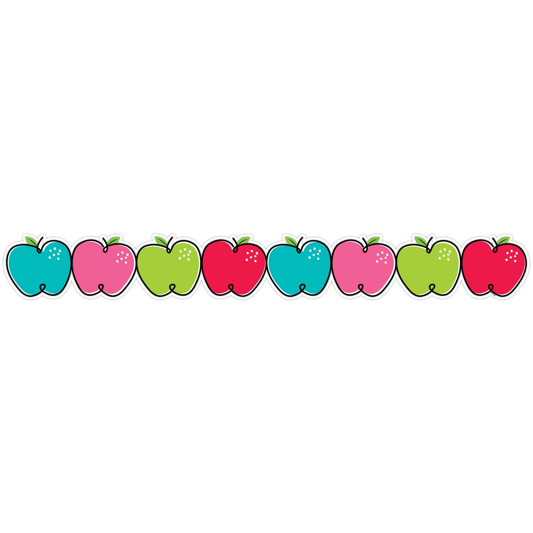 Dress up bulletin boards, rooms, hallways, and common areas with the bright colors and whimsical designs in this Doodle Apples Border. This versatile border is perfect for a variety of bulletin boards and classroom decoration themes. These EZ borders come in smaller strips, which are easier to manage and store. Each pack comes with enough borders to complete 2 full bulletin boards. Strips measure 3" x 24". Each pack includes 24 strips (48 feet).