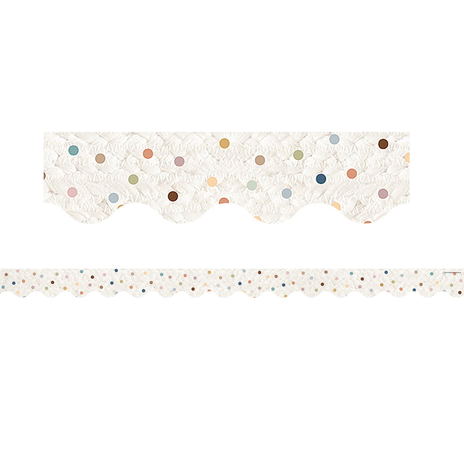 Use scalloped border trim to liven up your classroom! Create fresh looks for bulletin boards, windows, walls, and class projects. Mix and match with coordinating products (stickers, notepads, awards, etc.) for a classroom theme. Each pack includes 12 pieces (approximately 2-3/16" x 35") for a total length of 35 feet of trim!