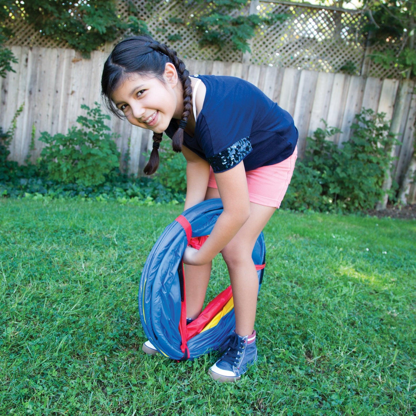 We've taken our classic polyester tunnel design and given it a primary colors twist with our Find Me Tunnel! Measuring 6 feet long and 19 inches tall, the lightweight Find Me Tunnel is the perfect size for young children to work on their gross motor skills by crawling in a fun and stimulating environment. The quality construction is not only ideal for rugged play but it is also designed to be opened and closed in just a few seconds. Best of all, your child can stretch their imagination for hours in comfort and safety, thanks to the padding around the spring-steel frame. When your little one has finished playing, the tunnel folds flat for space-saving storage.