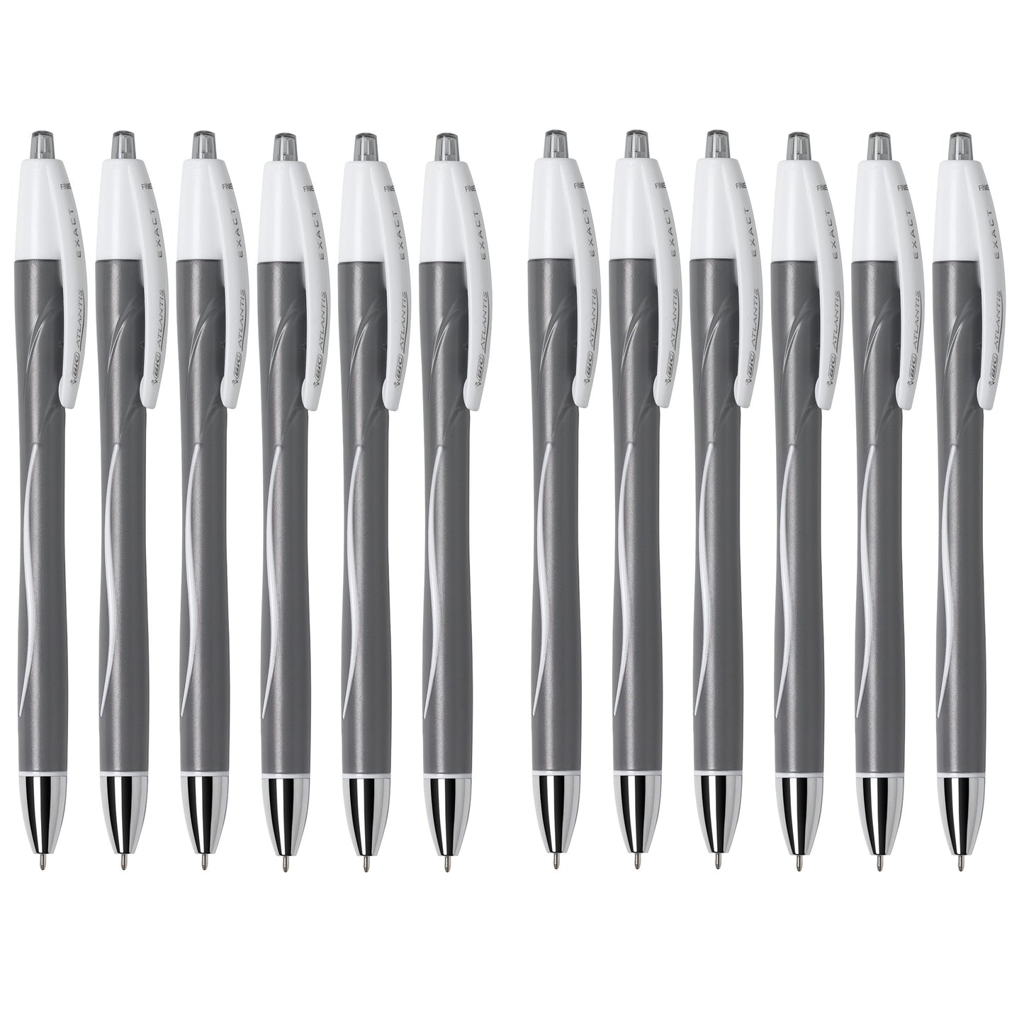 Featuring sleek, comfortable barrels, BIC Glide Exact Retractable Ball Point Pens bring a precise touch to everyday writing tasks. Each pen comes equipped with a 0.7mm fine point that creates exact, precise lines and ink that writes even smoother than the BIC classic ink system. A full grip area offers a controlled yet comfortable hold--ideal for prolonged writing sessions. Thanks to the pen's convenient retractable design, you can deploy and retract the tip with a smooth click. Each pack includes 12 black pens.