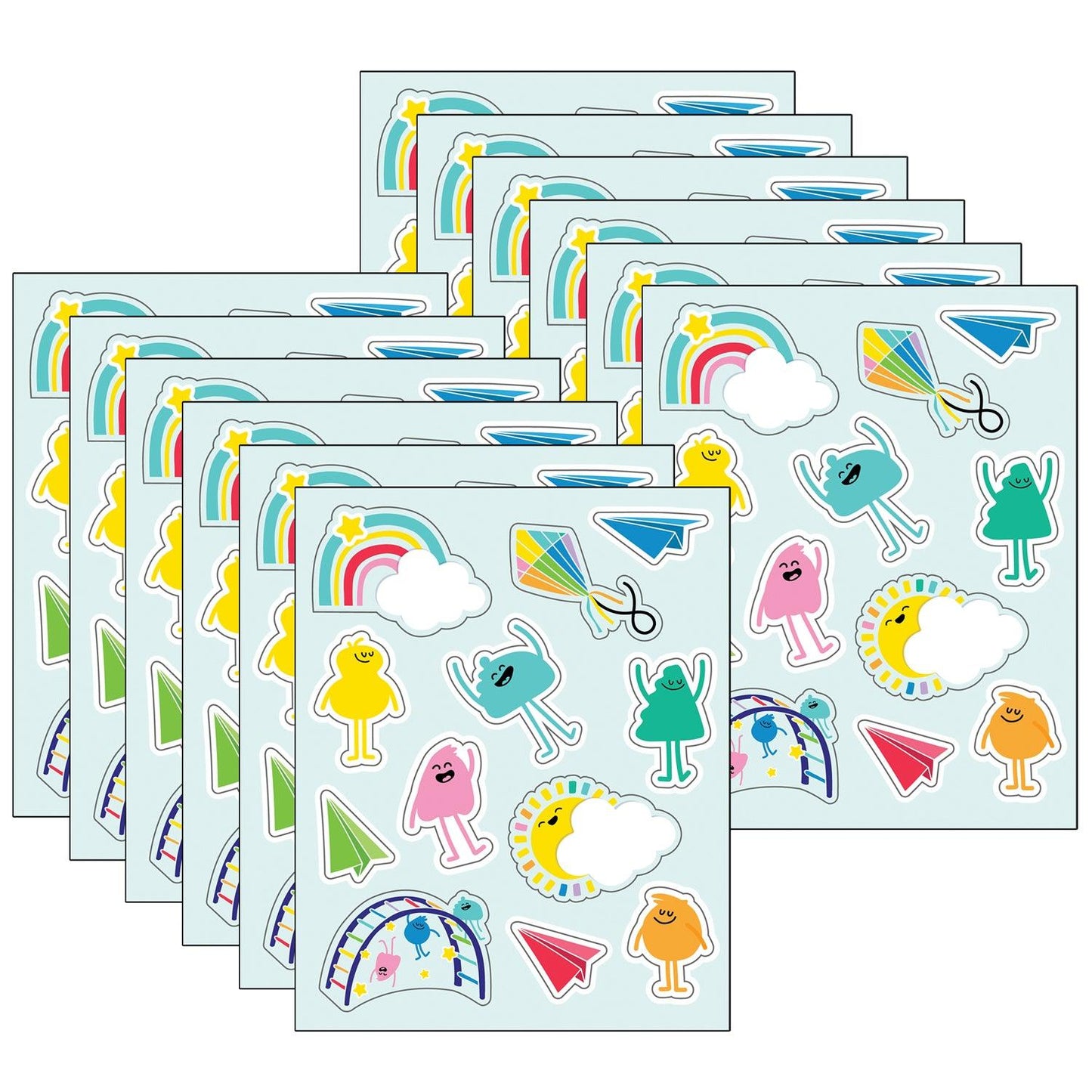 Carson Dellosa's Happy Place Shape Stickers inspire students to keep up the good work. Each pack of fun stickers includes 6 sheets that feature vibrant and cheerful shapes such as smiling people, suns, rainbows, multicolored kites, and an array of bright paper airplanes. Each sheet features 12 stickers, ranging in size from about 1-inch x 1/2-inch to 2 inches x 1 1/4 inches. Acid-free and lignin-free, these stickers are great for encouraging students and rewarding them on a job well done. Stickers are also great for scrapbooking and photo projects, enhancing assignments, goodie bag gifts, and much more. Education happens everywhere, and Carson Dellosa strives to provide the tools needed to inspire learning everywhere it happens. Each pack includes 72 kids stickers. Sold as 12 packs for a total of 864 stickers.