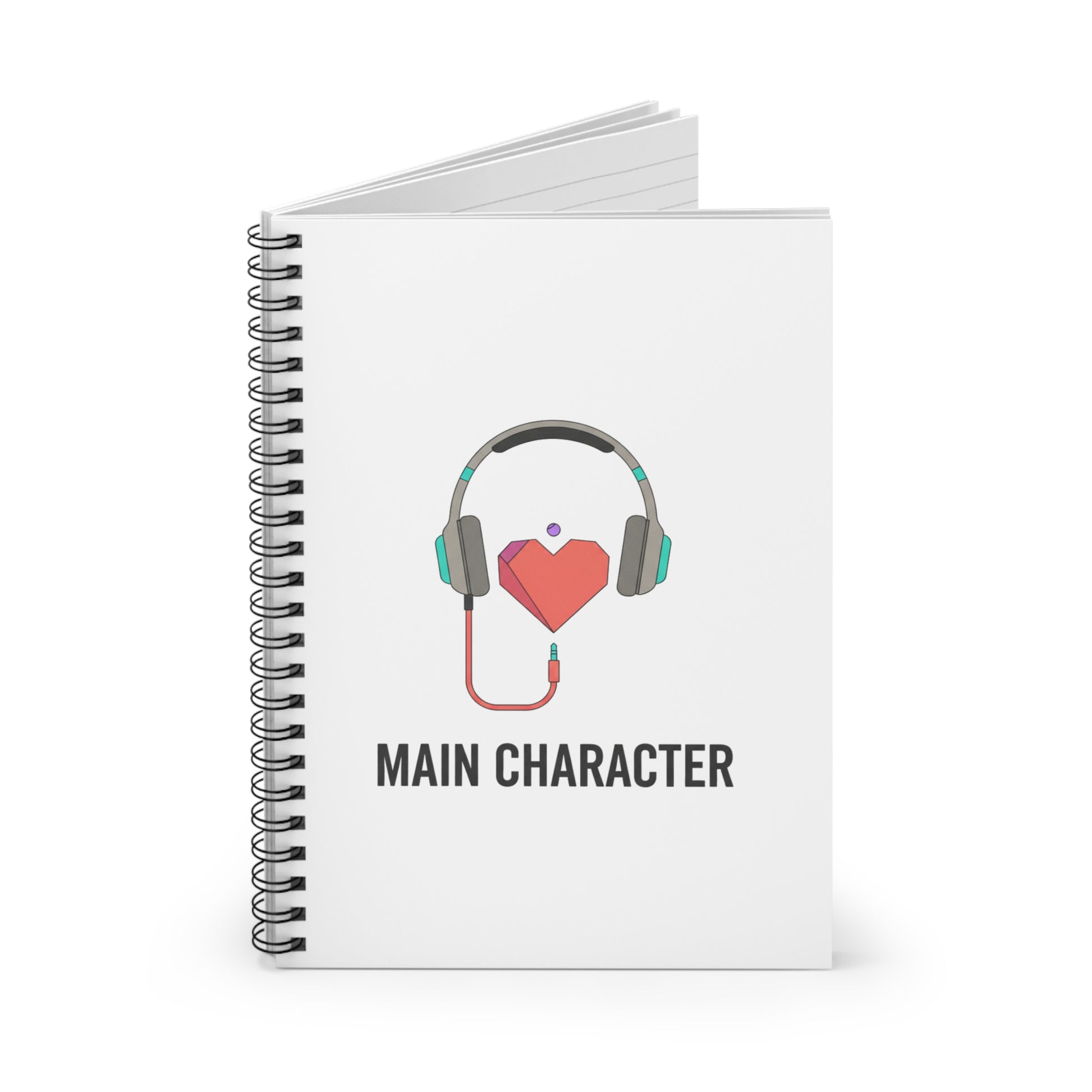 Headphones Heart Cord | Spiral Journal Notebook for Notes & Planning | Back to School, Galentine’s Gift | Y2K Valentine Aesthetic