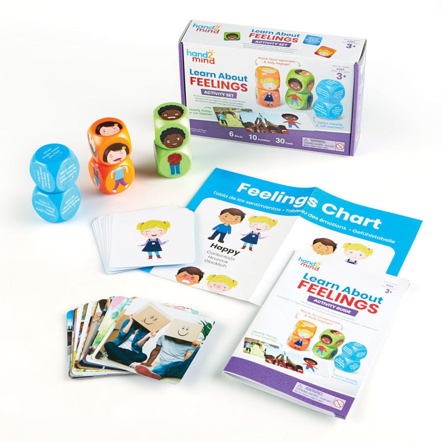 Help children build important social-emotional skills through 10 engaging activities. Set includes 2 plastic question cubes, 4 plastic character cubes, 12 character cards, 18 situation cards, and 1 poster. Children match body postures and facial expressions, learn that emotions can look different on different people, and discuss how situations may cause an individual to feel a certain emotion. For over 50 years, hand2mind has encouraged hands-on learning and discovery, driving deeper understanding and helping children unlock their full potential. With products designed to enhance learning in the classroom and the world around us, we strive to find new ways to encourage hands-on exploration and discovery.