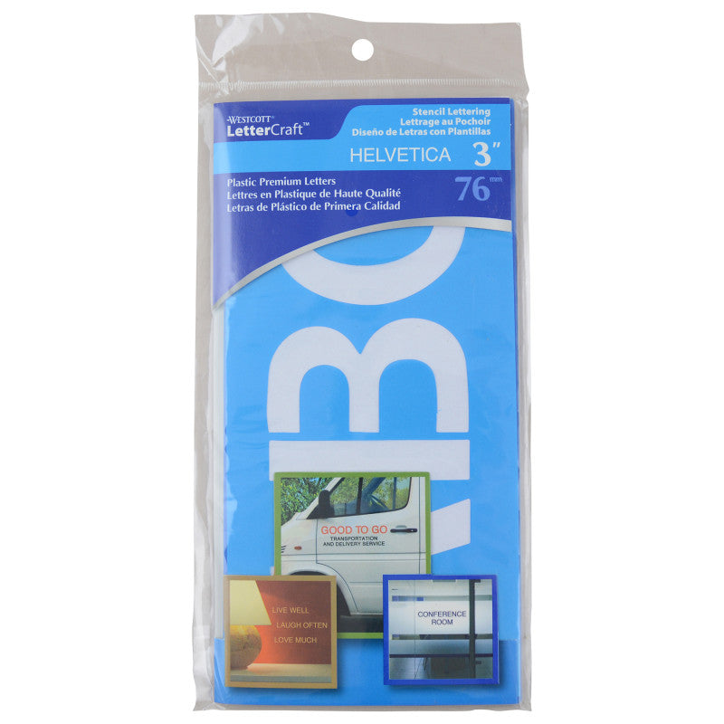 Westcott's LetterCraft plastic lettering stencils are exactly what you are looking for in crafting. Perfect for home, school, or office, they are easy to use for posters, signs, reports, or anywhere stylish lettering is needed. Their smooth die-cut edges provide a sharp outline for tracing, and their non-glare blue plastic stencil guides make letter alignment a snap. Each pack includes 10 stencils (39 characters).