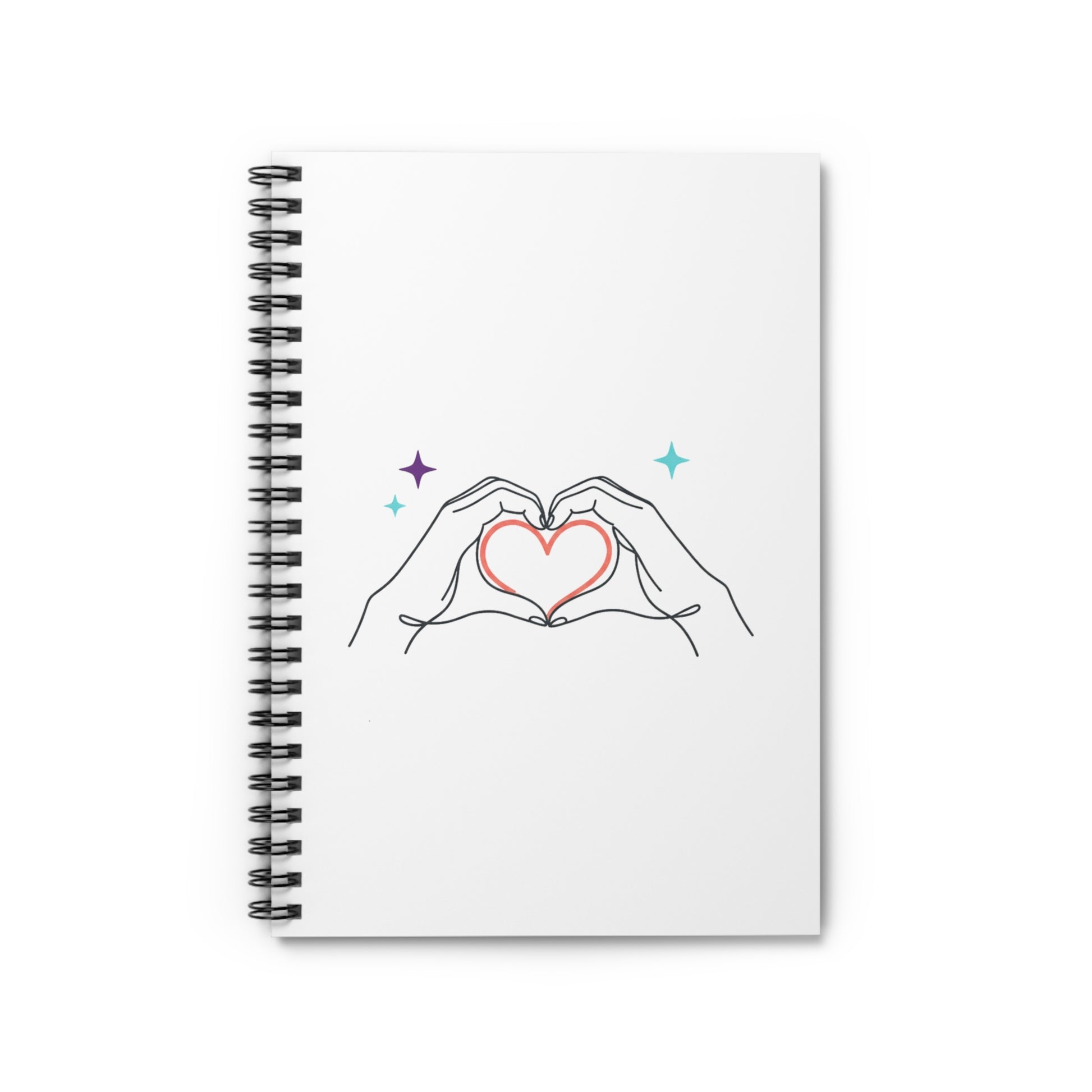 Search keywords: spiral journal notebook, line art notebook, heart hands journal, minimalist stationery, aesthetic valentines notebook, back to school supplies, gen z journal.