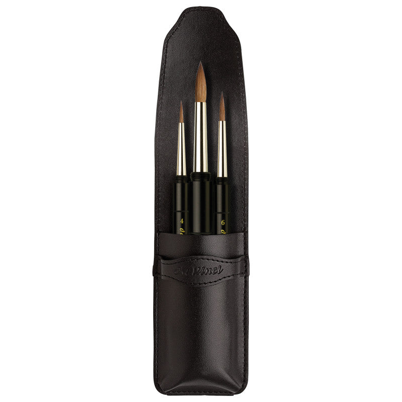 MAESTRO Pocket Travel Brushes, Kolinsky Red Sable, Watercolor, Round, Series 1503, Assorted, 3 Brush Set